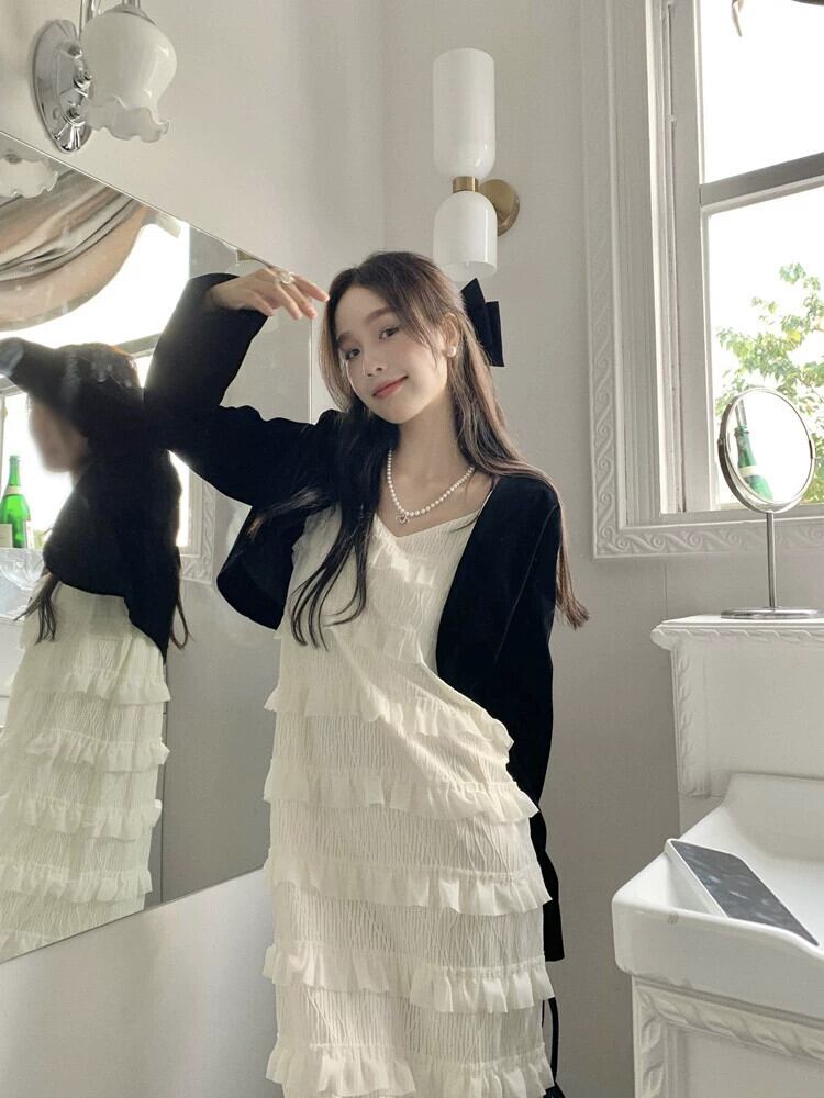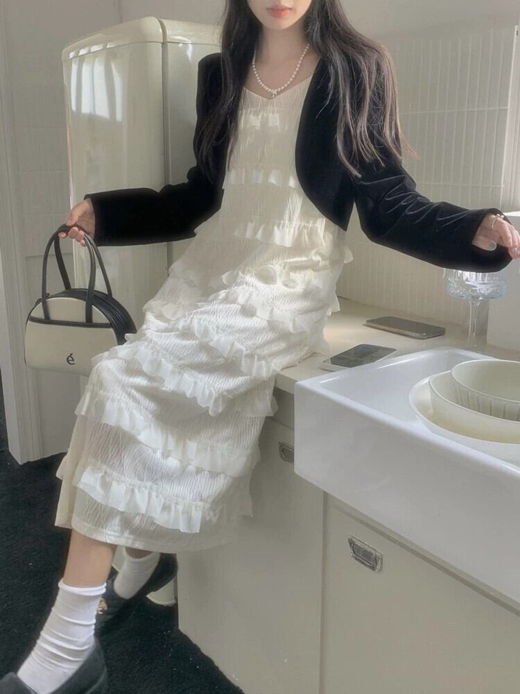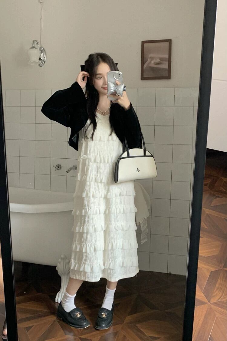 ホワイトケーキスカート サスペンダードレス レディース 春 フレンチ風 優しいスタイル デザイン感 ニッチ インナー ロングスカート スプリング 春物 8571699423057911