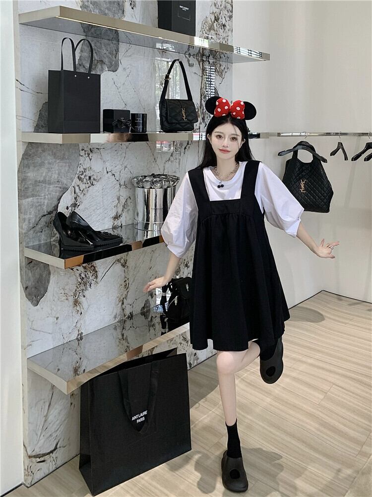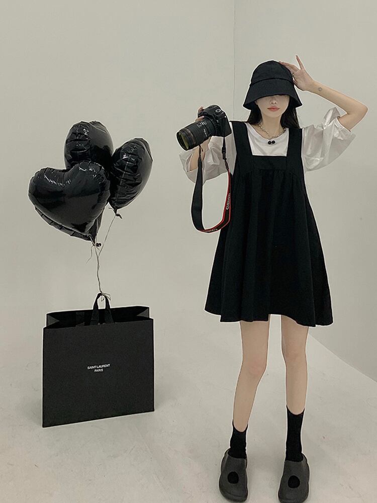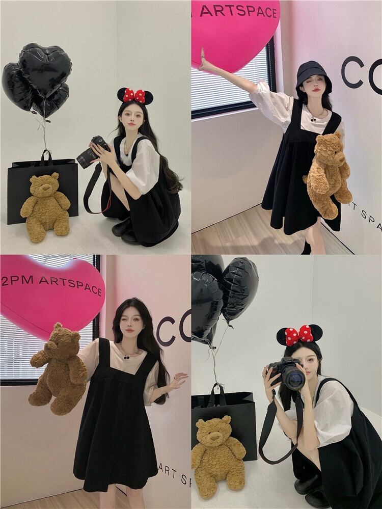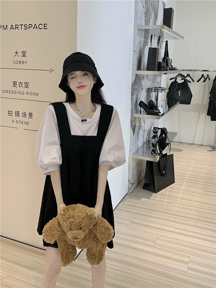 黒サスペンダードレス女性の夏フレンチレトロニッチデザインセンス年齢軽減美しいeignスタイル人形ショートスカート ブラック サマー 夏物 8571639963730333