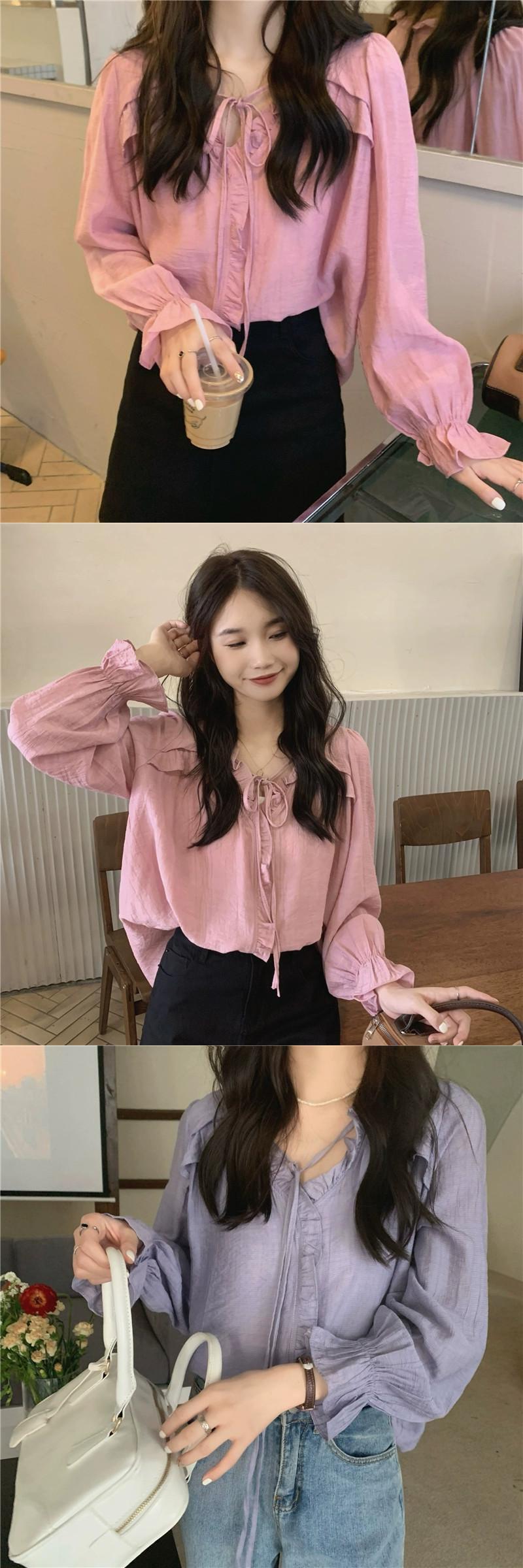 長袖シャツレディースデザインセンスニッチシャツ2023年秋新作フランスの優しく美しくユニークなトップス ロング オータム 秋物 8571647783870924
