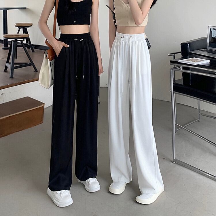 ブラックスーツパンツレディースルーズストレート夏薄部モップワイドレッグパンツニッチデザインセンスハイウエストカジュアルパンツ ハイウェスト サマー 夏物 8571653518769307