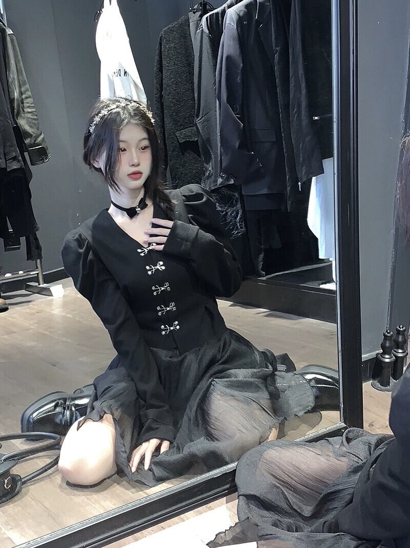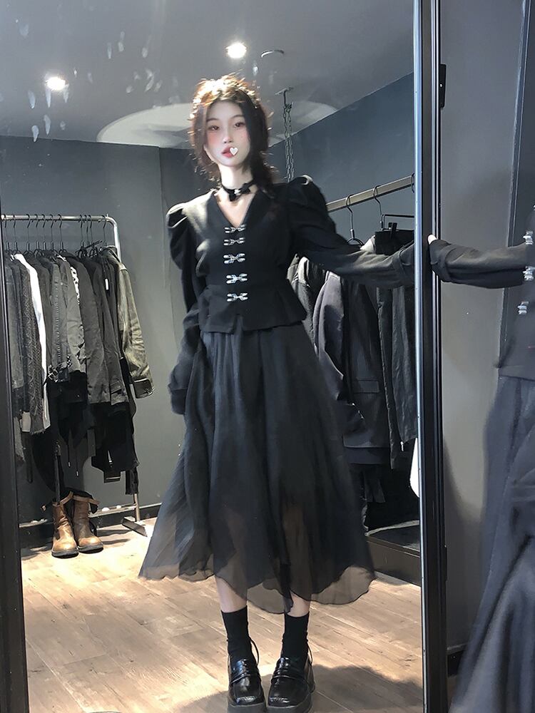 色:メタルボタンシャツ,黒の妖精のドレス