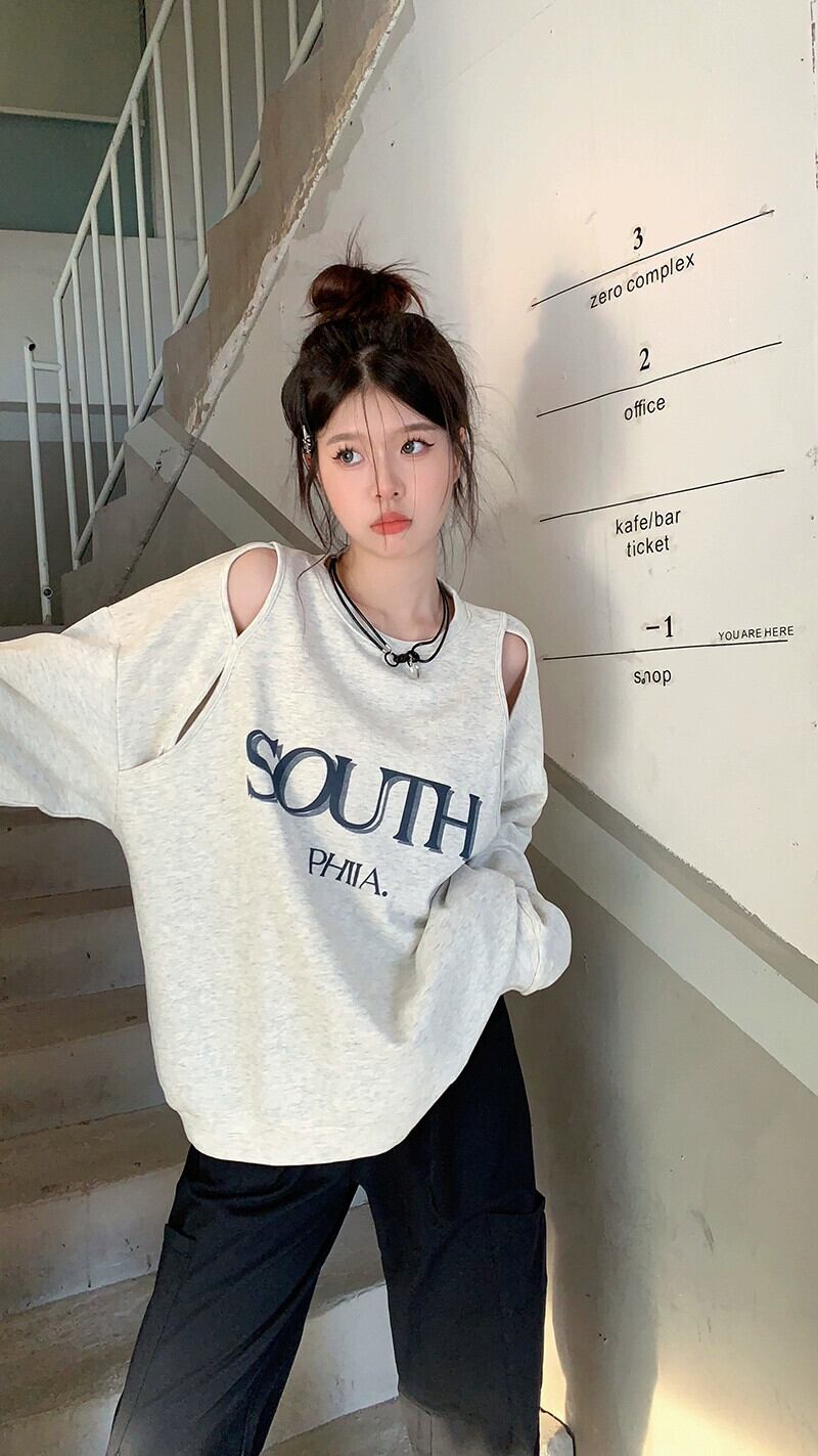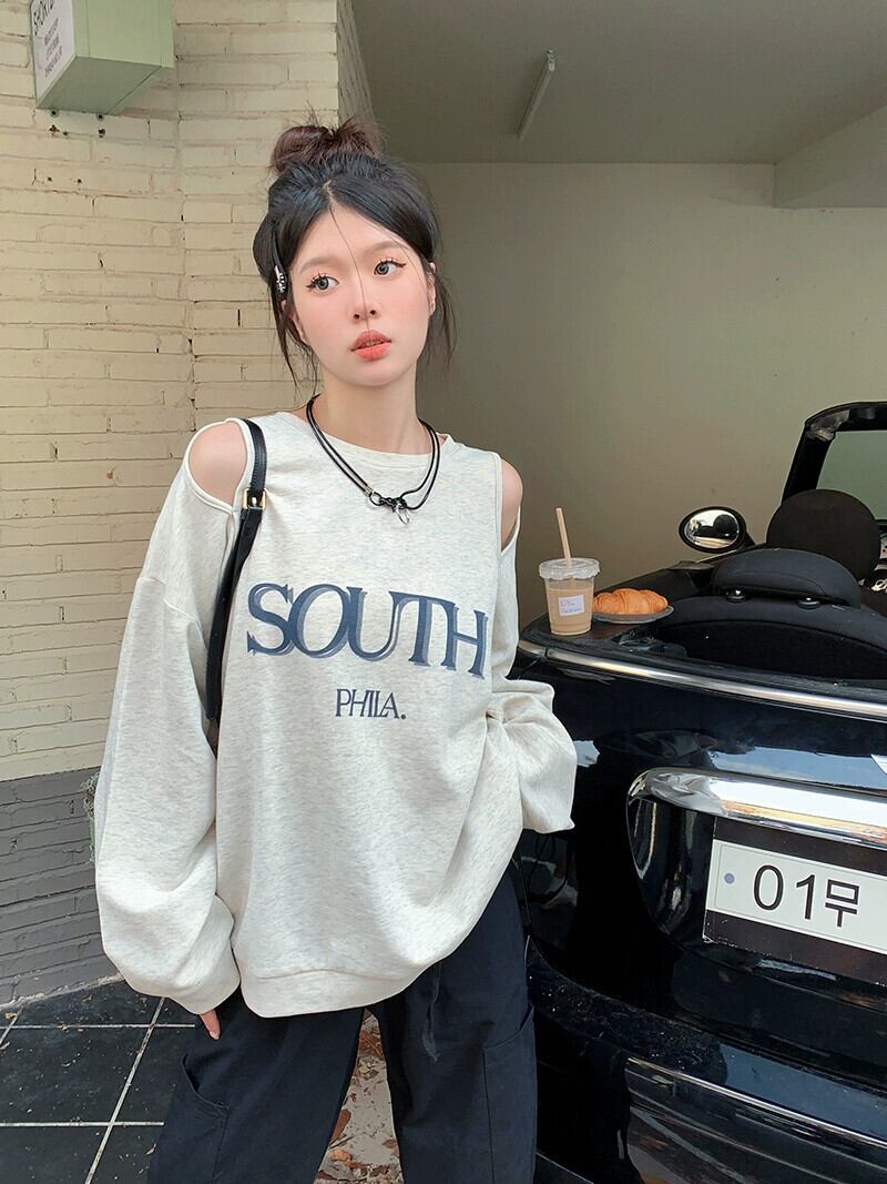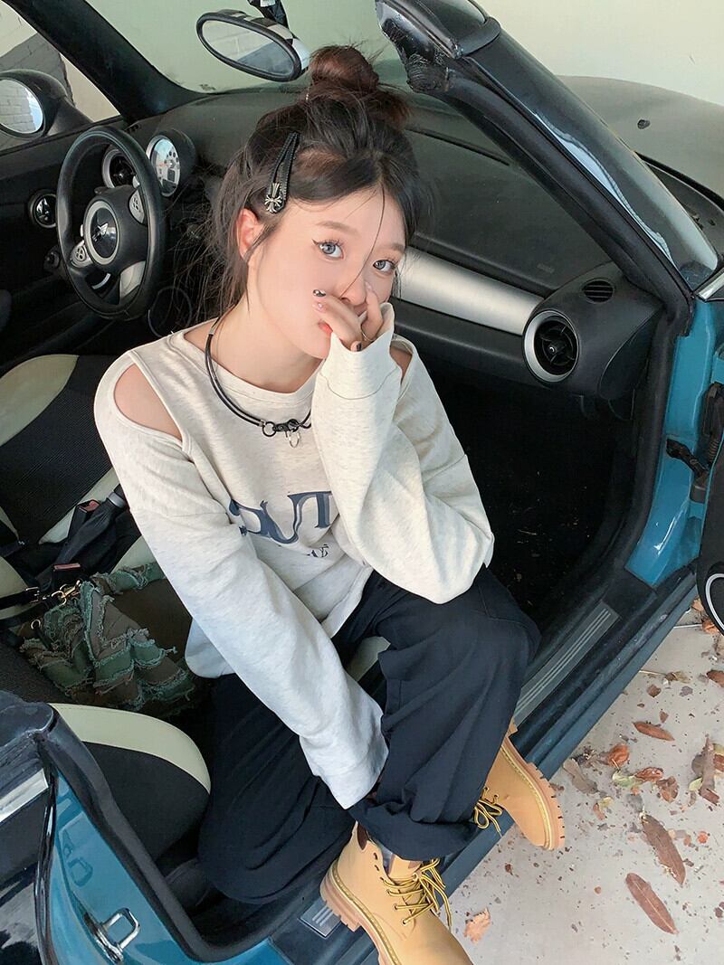アメリカングレーのセーターの女性の秋の薄いセクション2023新しいデザインセンスニッチルーズストラップレス長袖トップス ロング オータム 秋物 8571628574297683