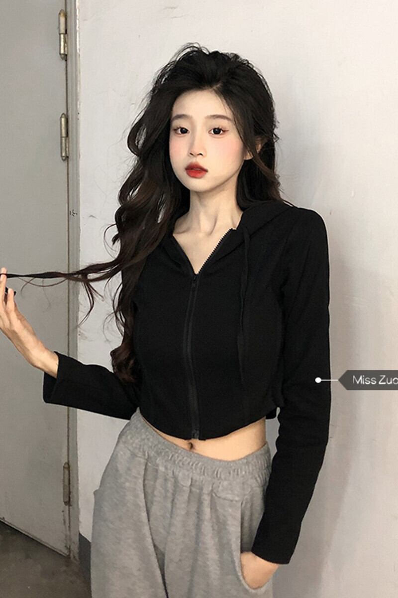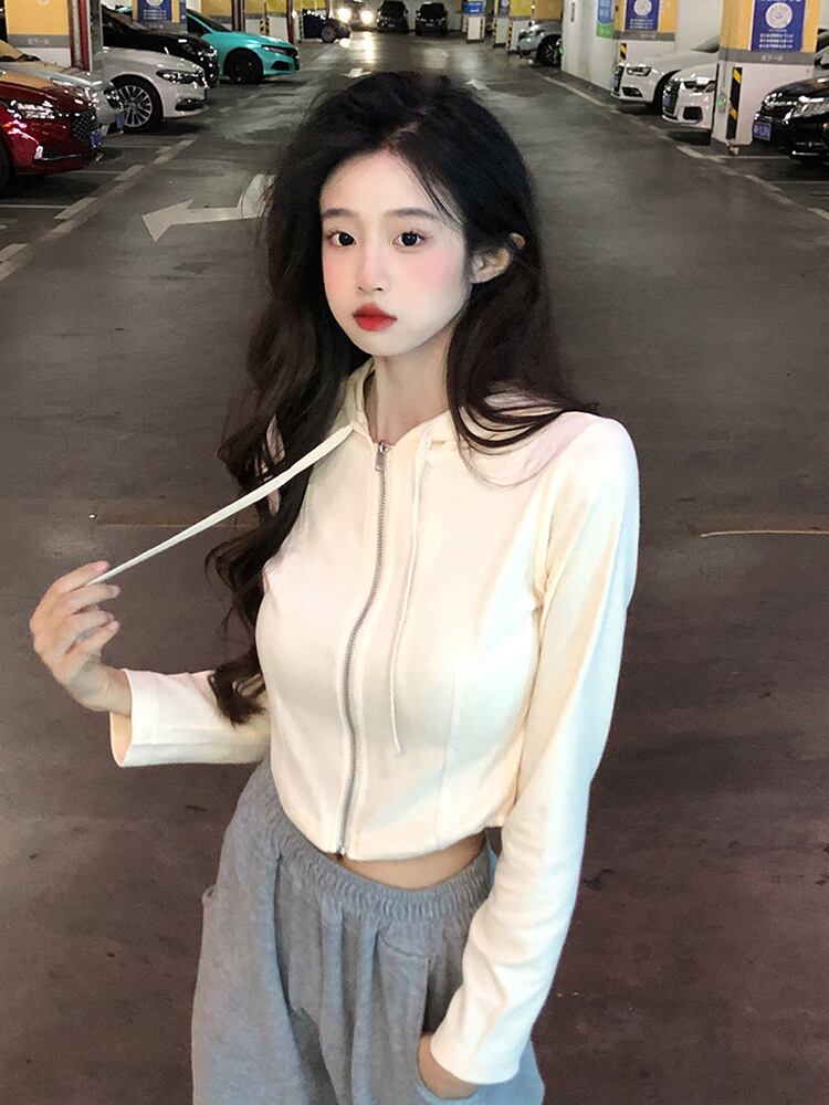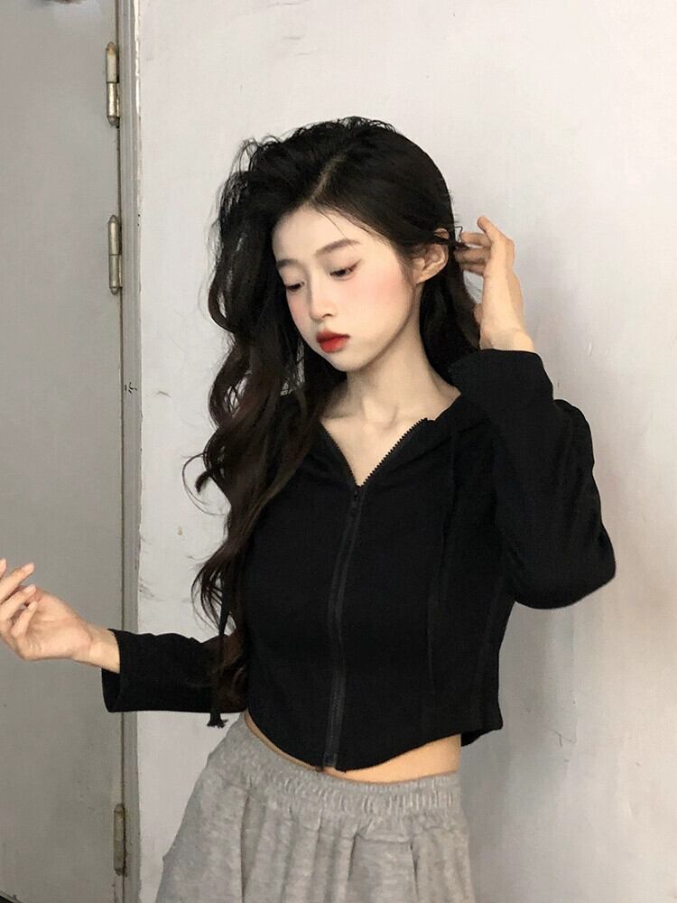 フード付き長袖Tシャツの女性のデザインセンスニッチ2023秋の新しいユニークで絶妙なスリムショートトップ ロング オータム 秋物 8571630844348864