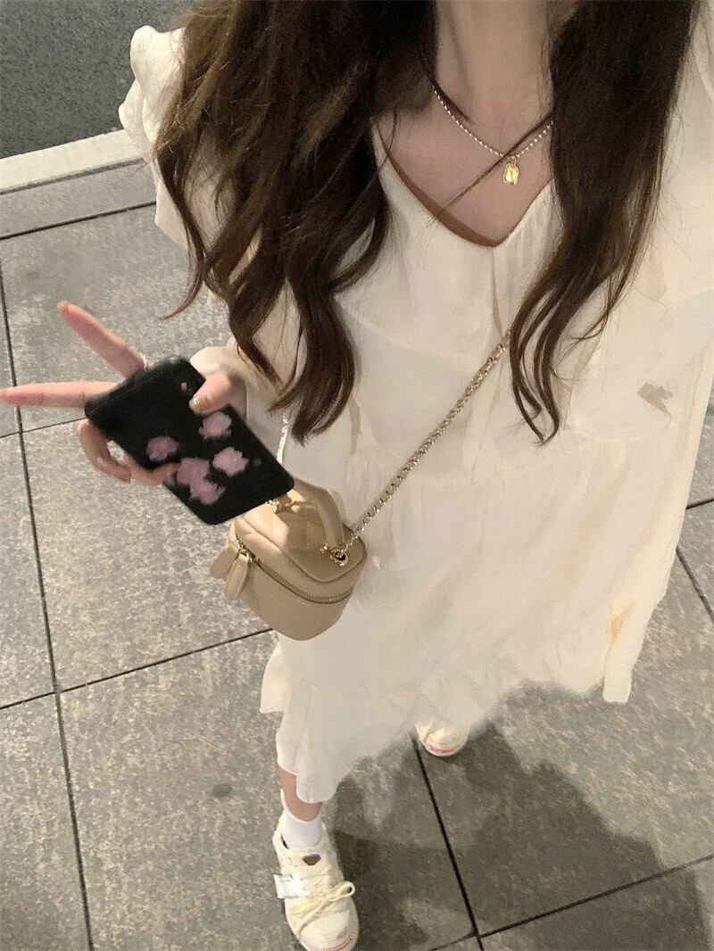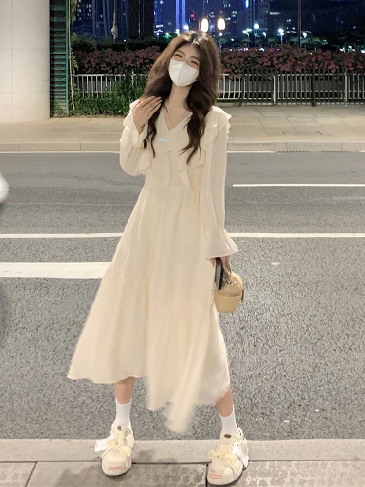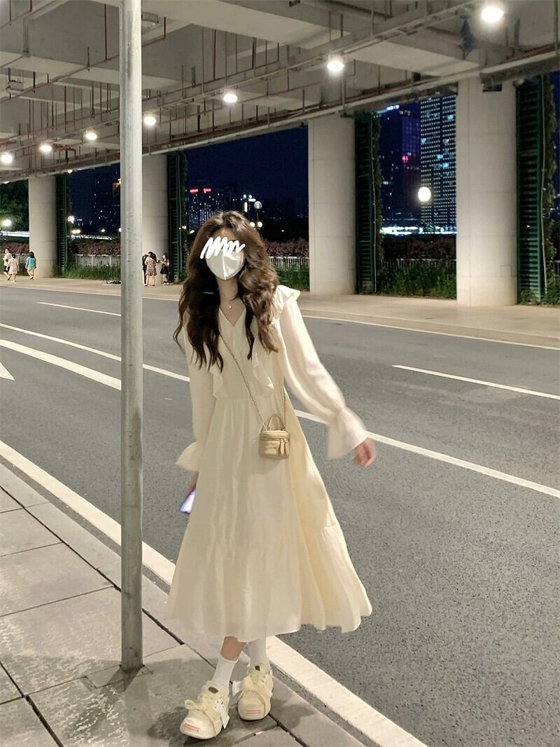 オフホワイトの長袖ドレスの女性の 2023 秋の新しい高品質の冷風小さなシックな美しいスカート ロング オータム 秋物 8571610259450388