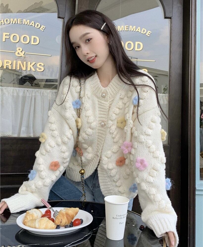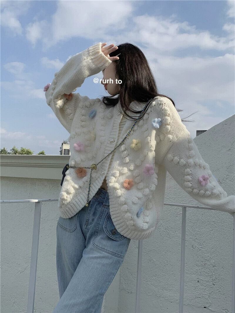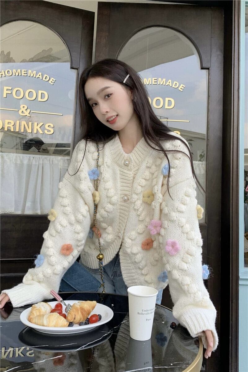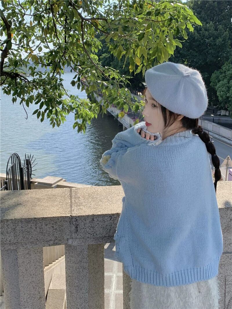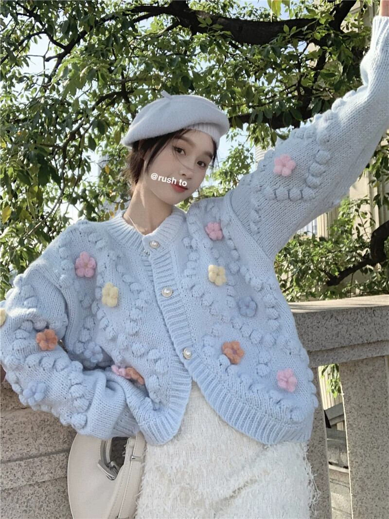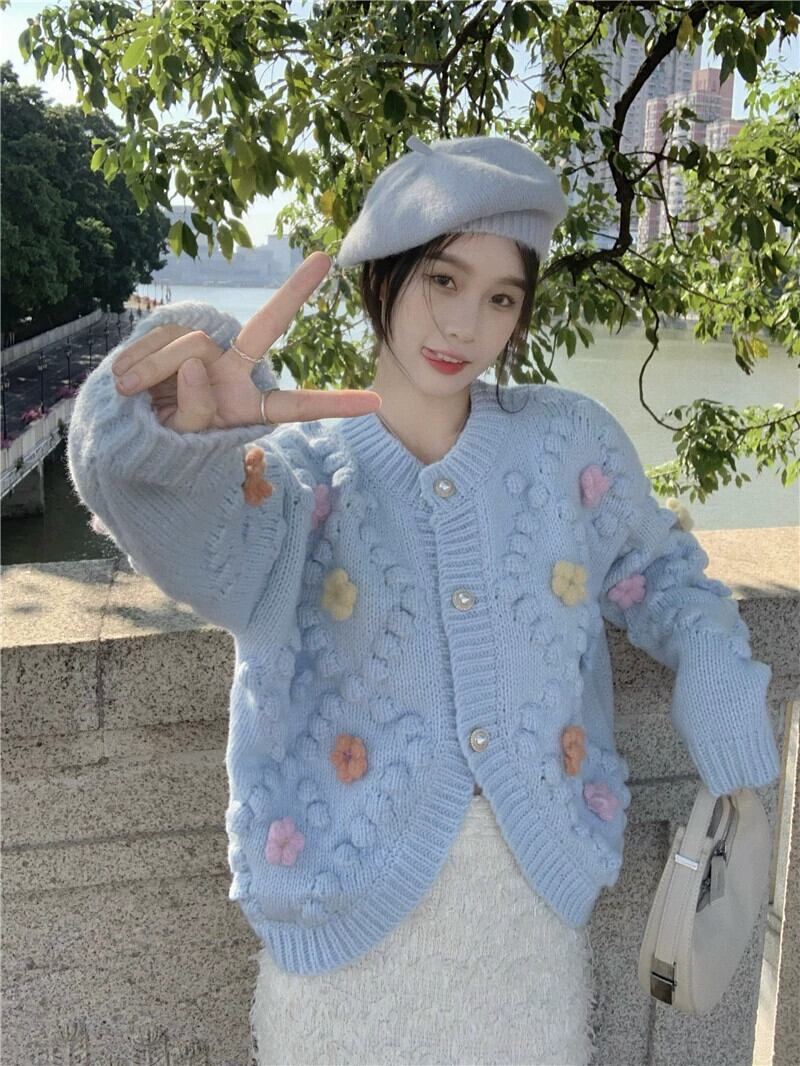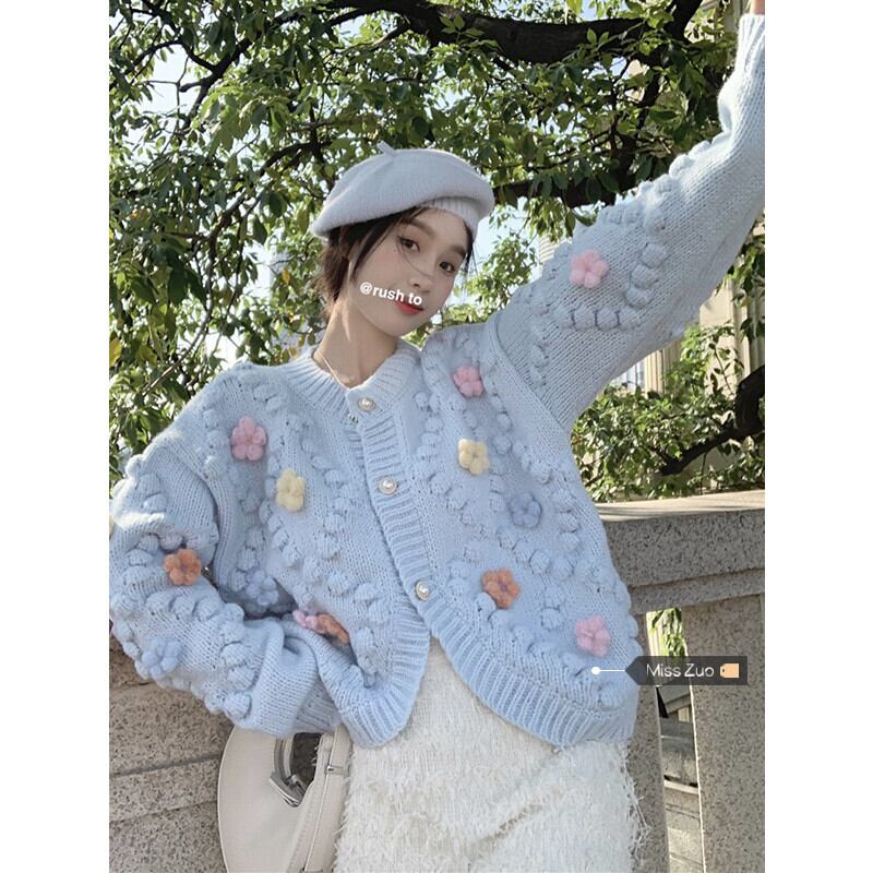 ブルーセータージャケット女性の秋2023新しいアート生乳甘いデザインセンスニッチルーズニットカーディガン 大人ガーリー スウィート キュート カジュアル オータム 秋物 857163591768915
