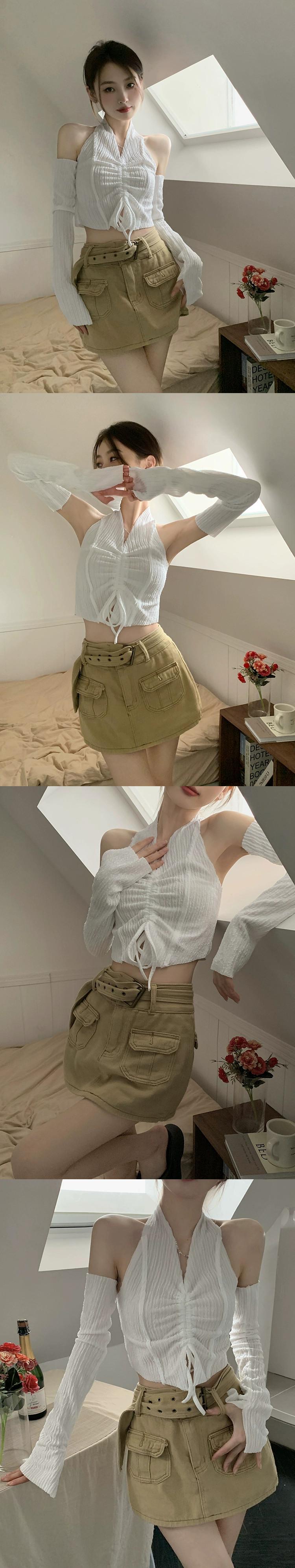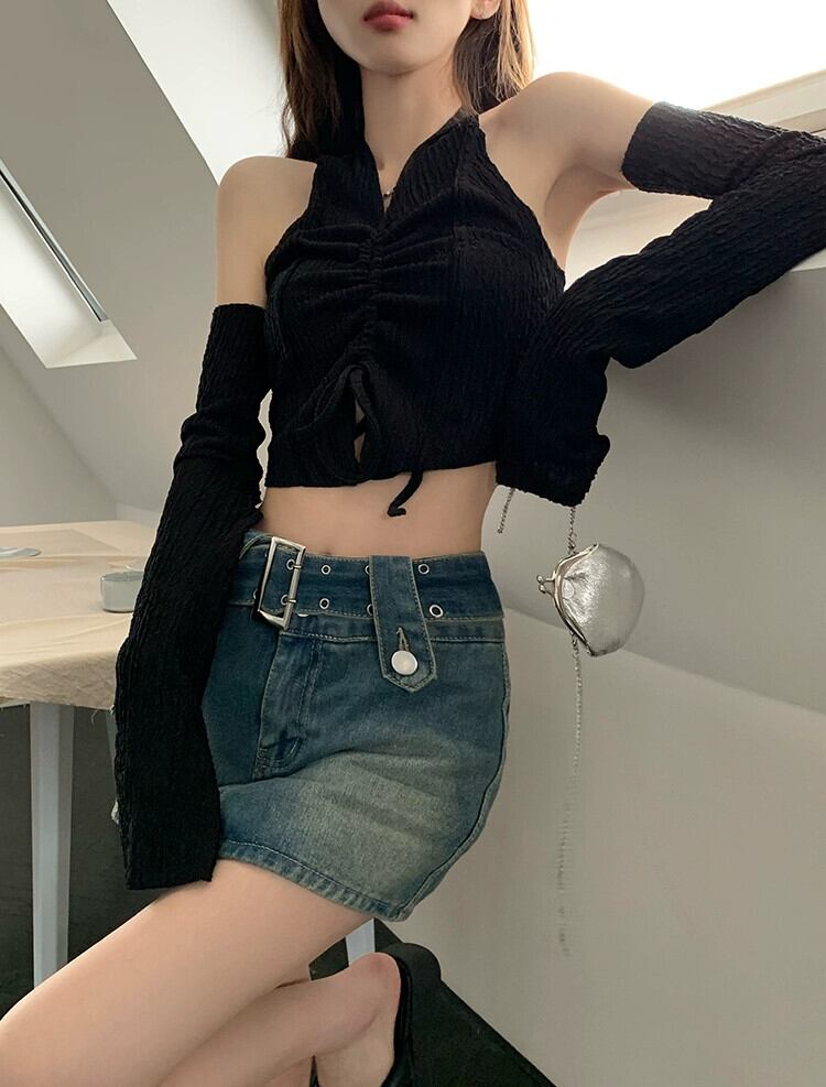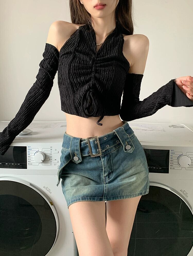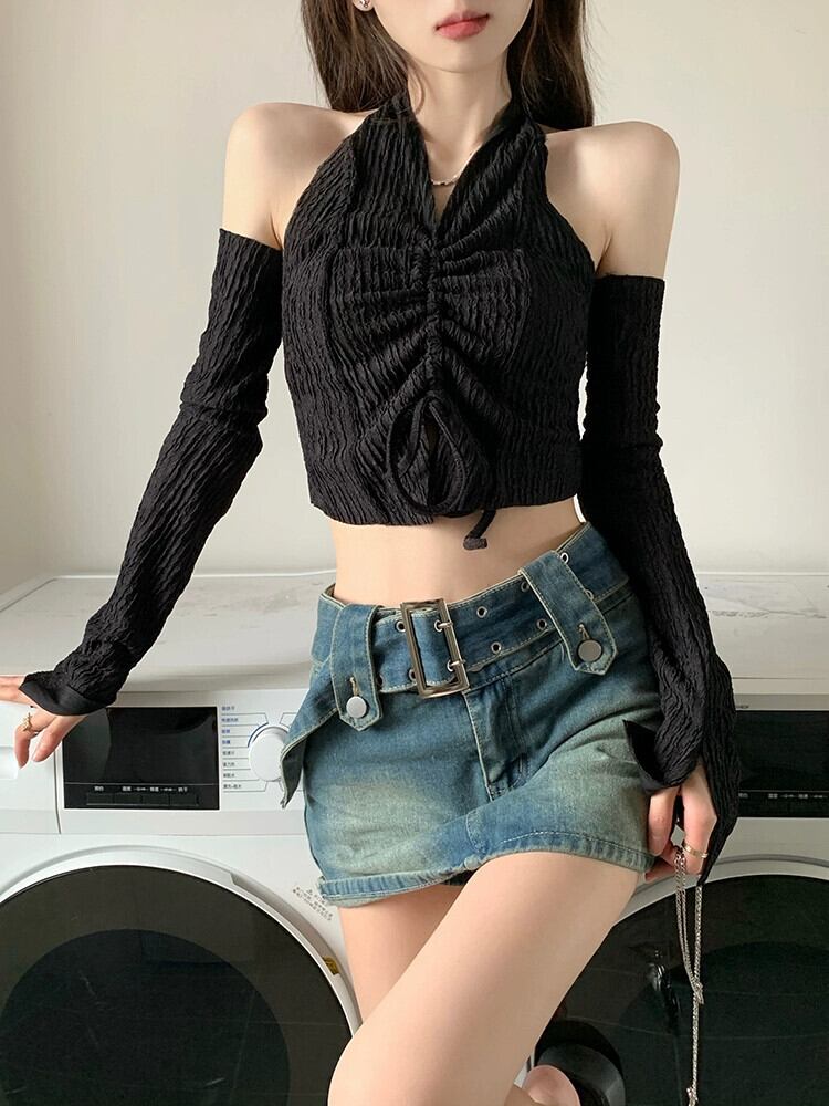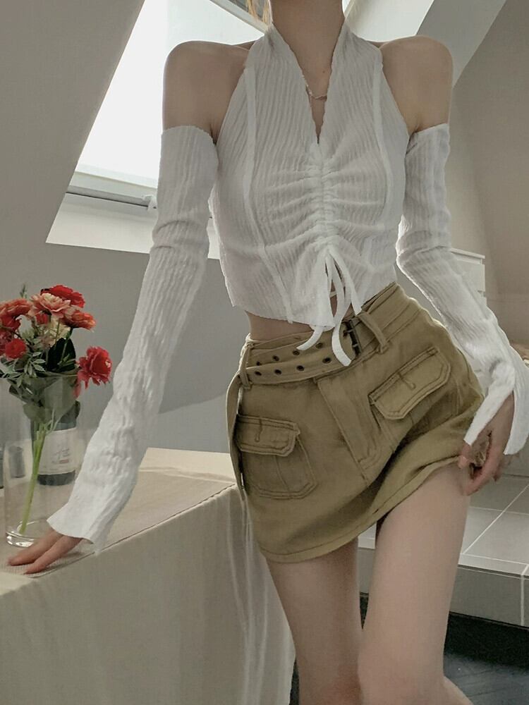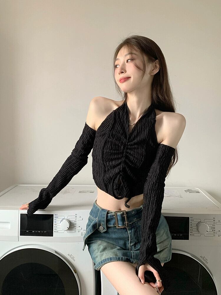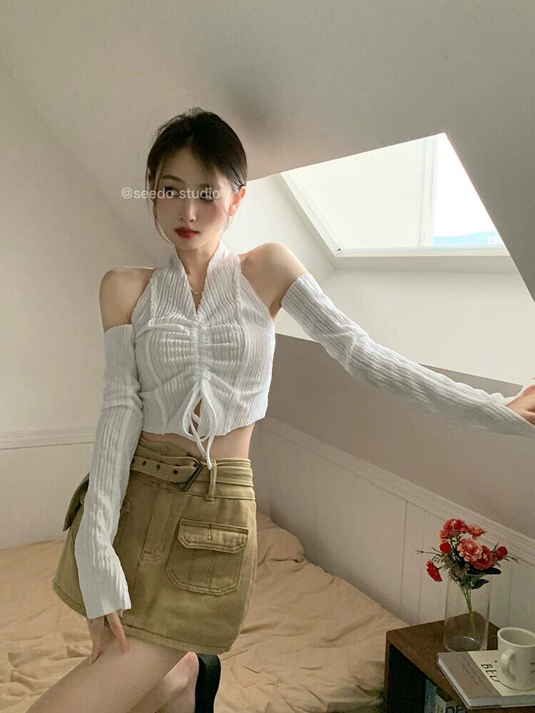ホットぶら下げネックショートトップ女性デザインセンスニッチ 2023 早春の新純粋な欲望スタイルセクシーなスリーブ Tシャツ スプリング 春物 ピュア 857166665999119
