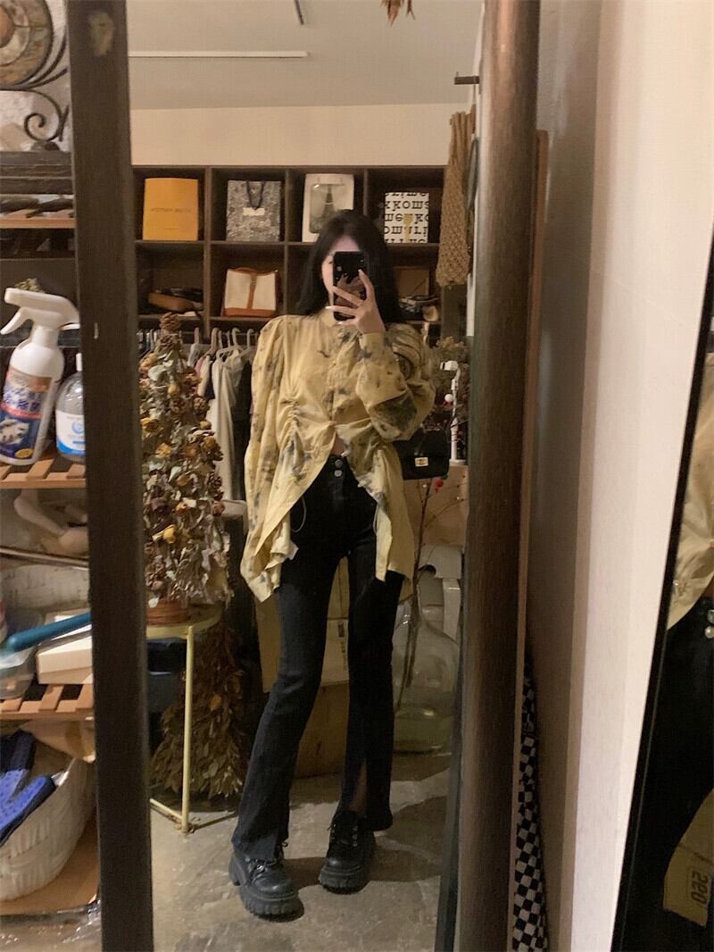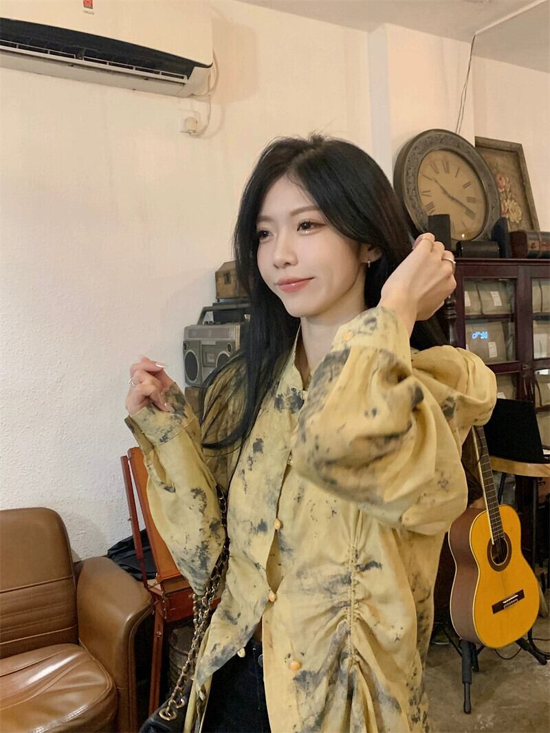 スタンドカラーシャツ女性デザインセンスニッチシャツ2023春新フレンチスタイルハイエンドセンス新中国風長袖トップ ロング スプリング 春物 8571643809367758
