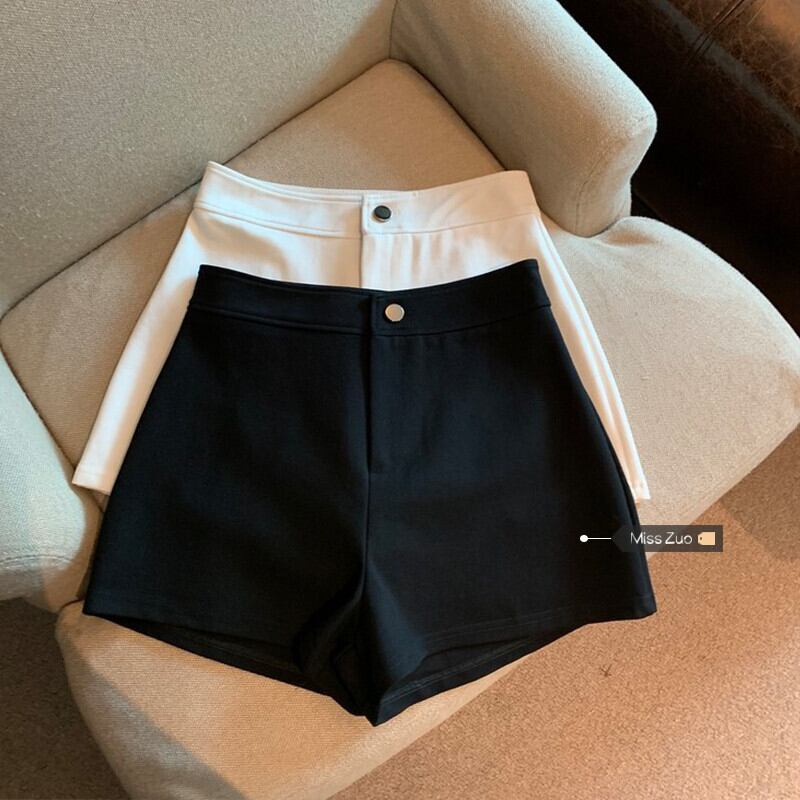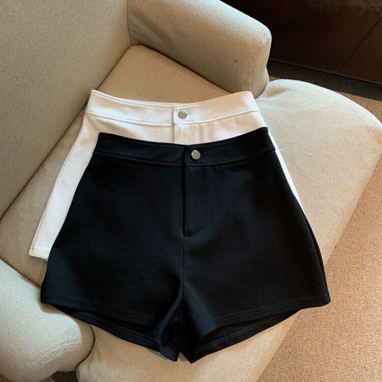 黒ネットレッドスタイルショートパンツ女性の2023秋の新しい小さな背の高いウエストスリムストレートカジュアルパンツ ブラック オータム 秋物 ショーツ ブルマー 8571652605464869