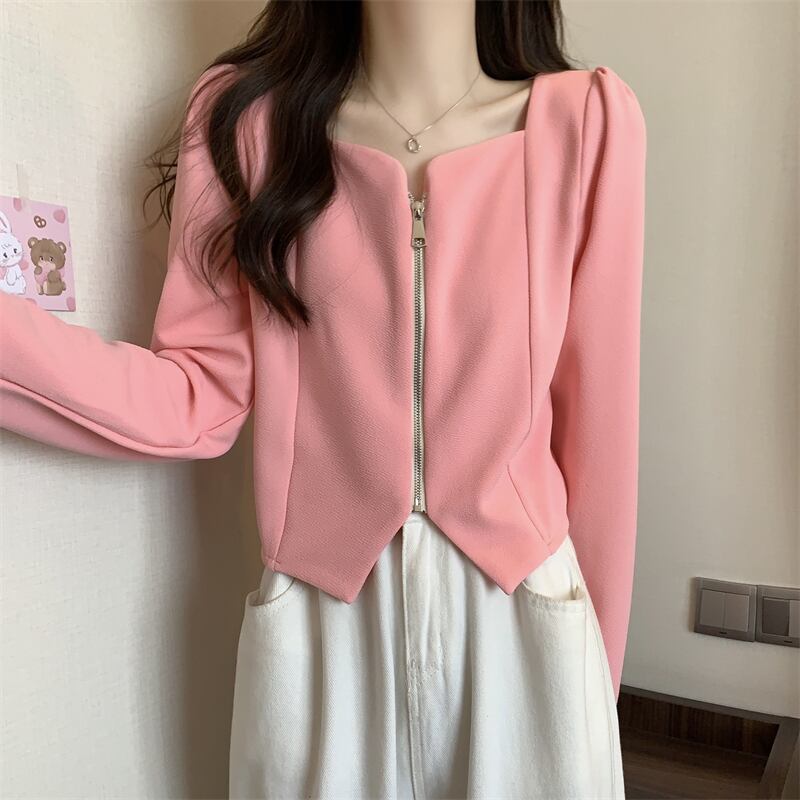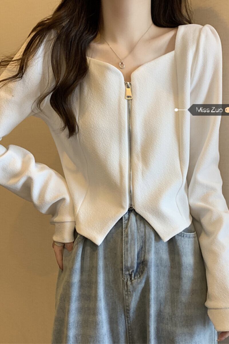 白いスクエアカラーショートトップレディース春の新スタイルデザインセンスニッチシャツフレンチシック長袖シャツ ロング ホワイト スプリング 春物 スクウェア 8571660550637021