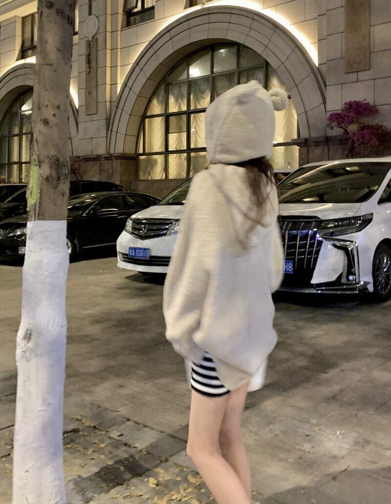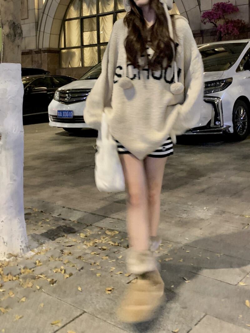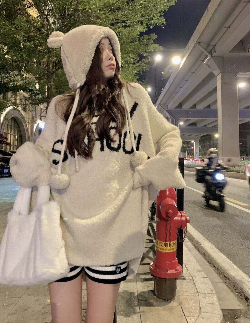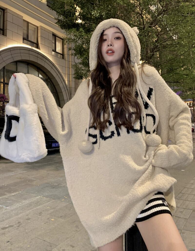 フード付きミッドレングスセーター女性ニッチデザインセンス2023春の新しい緩い怠惰な風ニットウェア スプリング 春物 8571636795421656