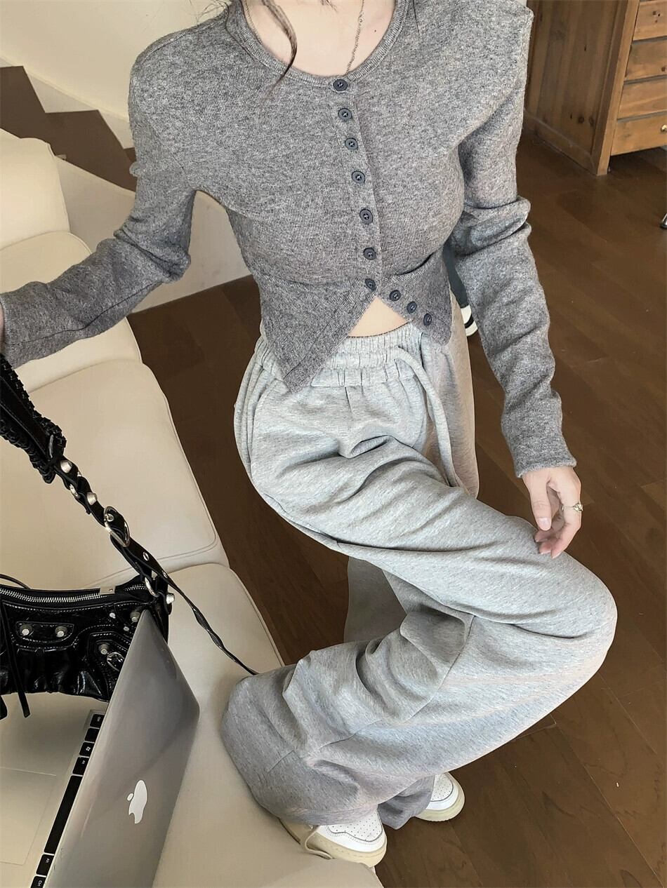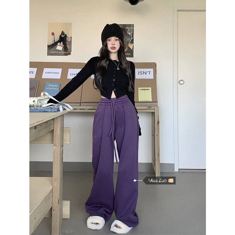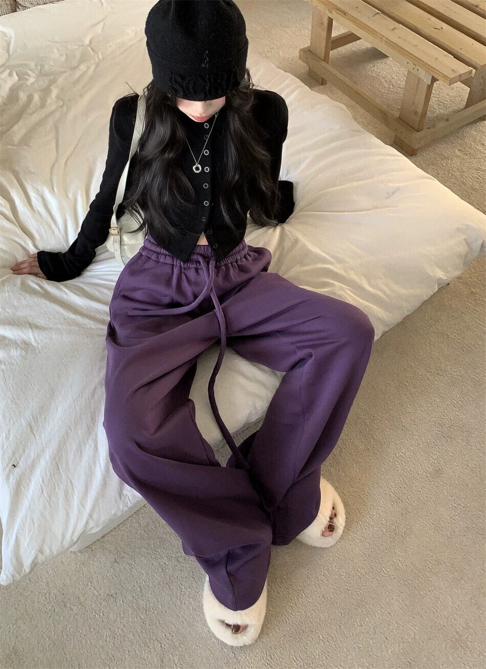 紫色のワイドレッグパンツの女性のハイウエストフロアモップパンツ2023秋の新しい怠惰なスタイルのルーズストレートカジュアルパンツ オータム 秋物 パープル 8571642869958625