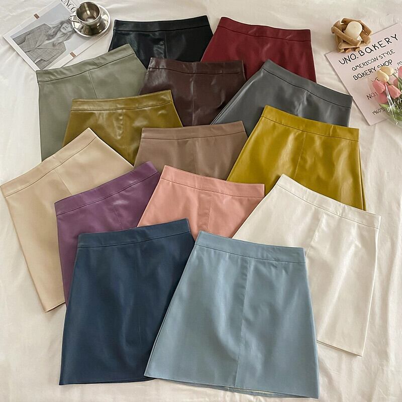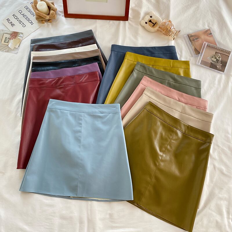レザースカート スカート女性 2023 秋冬新デザインセンスニッチ小男ハイウエストバッグヒップ A ラインスカートショートスカート ハイウェスト オータム 秋物 ウィンター 冬物 Aライン 8571647264459950