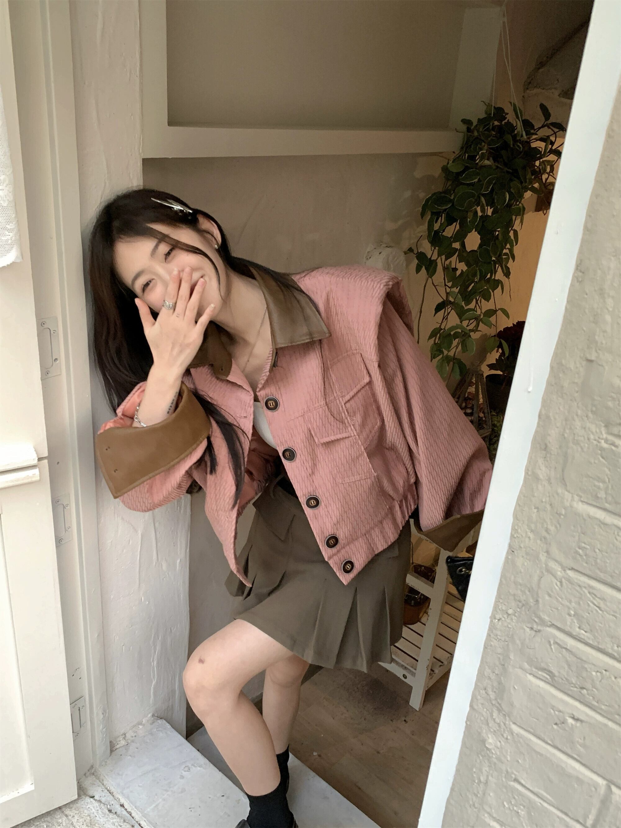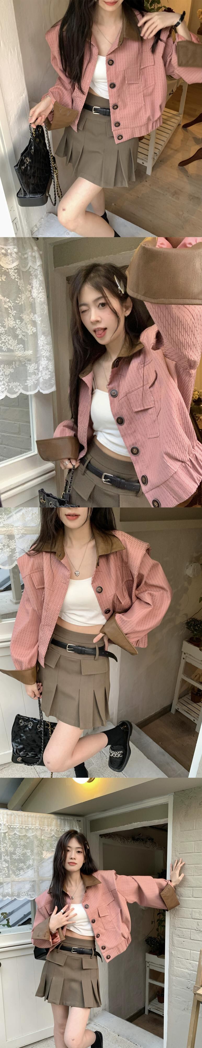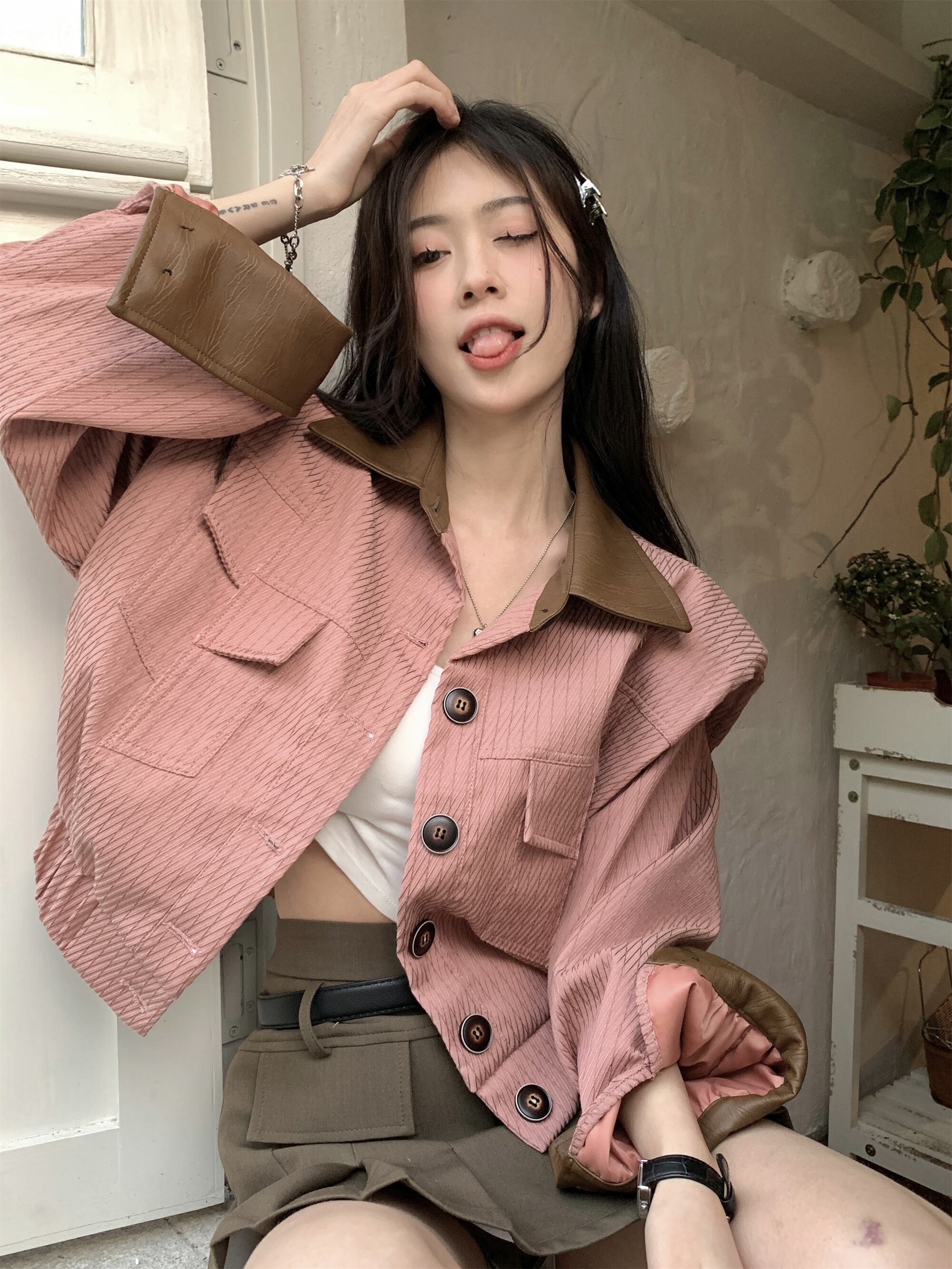 ピンクジャケット女性デザインセンスニッチ春 2023 新しいレトロ香港スタイルのシックなオールマッチショートトップ スプリング 春物 8571613141939046