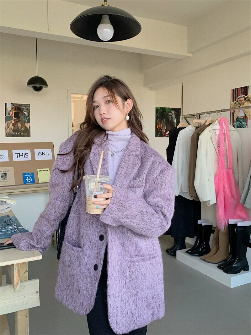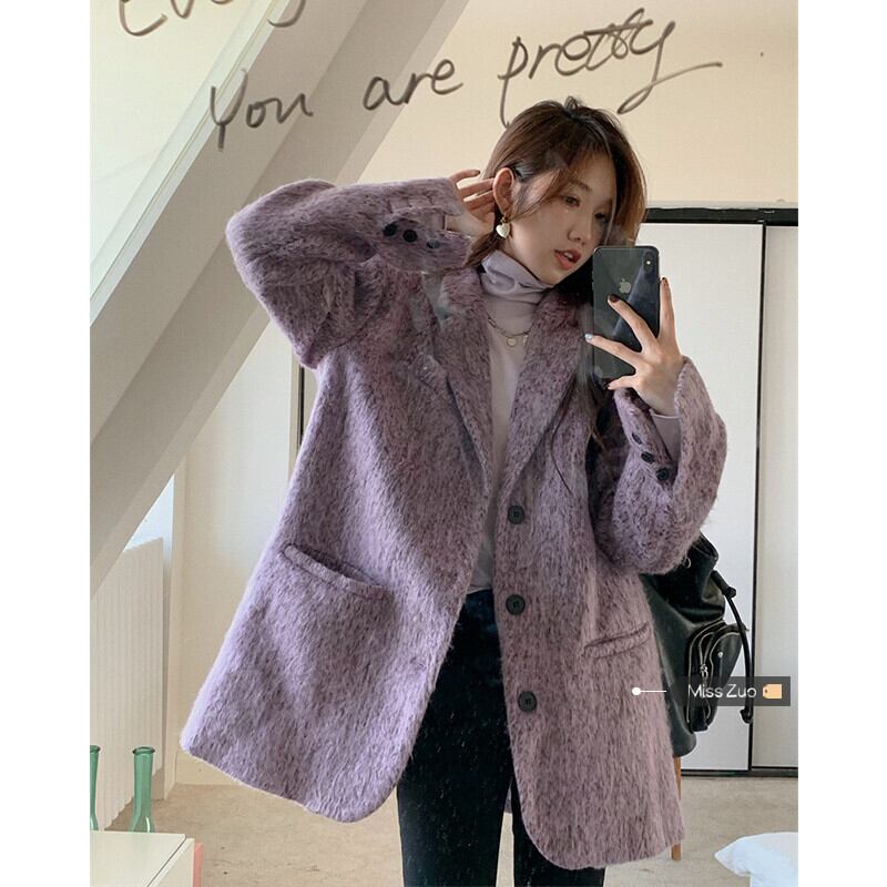 紫色のウールのスーツジャケットの女性の秋冬ミッドレングス2023新しいスタイルの高品質の小さなウールのトップ オータム 秋物 ウィンター 冬物 パープル 8571682813757704