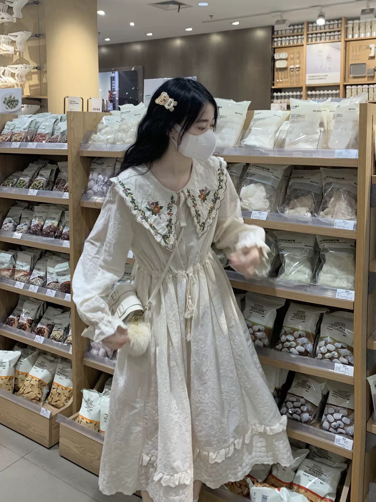 ドール襟モリドレスレディース小さい春新作フレンチスタイルニッチ美大生の初恋ロングスカート スプリング 春物 8571618966142394
