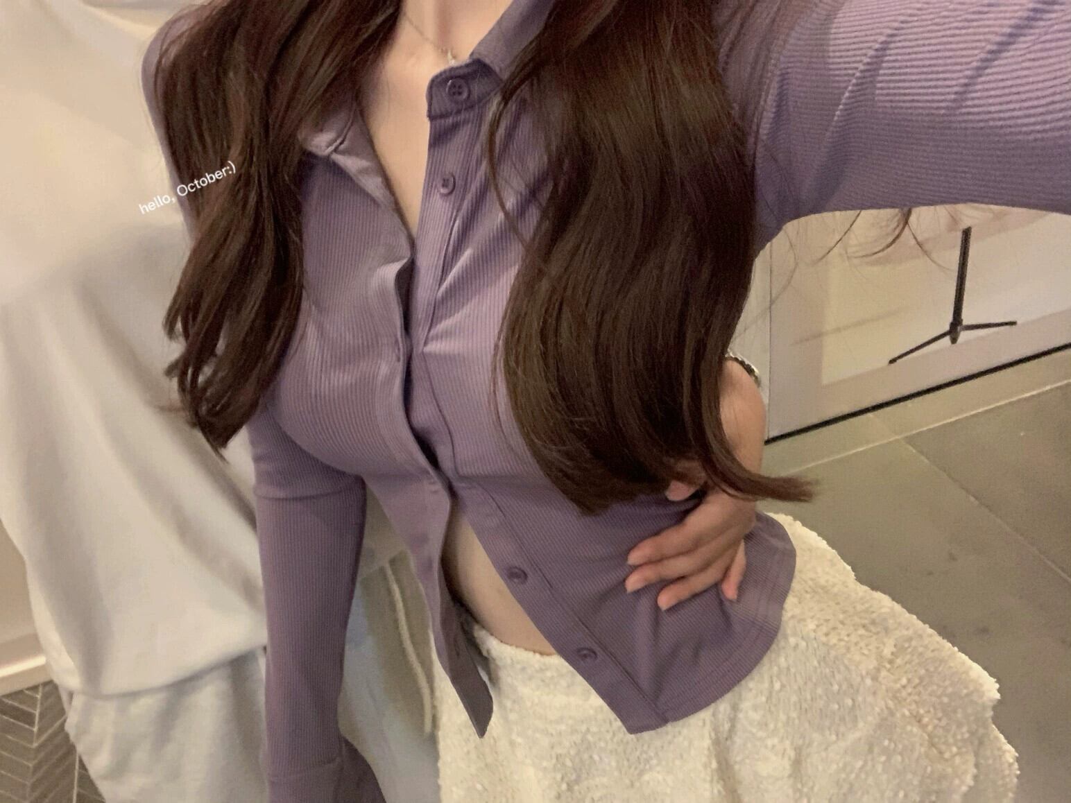 ホットショートトップ女性デザインセンスニッチ2023春の新純粋な欲望シックなスリムパープル長袖Tシャツ ロング スプリング 春物 ピュア 8571629873069518