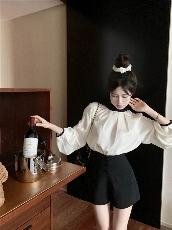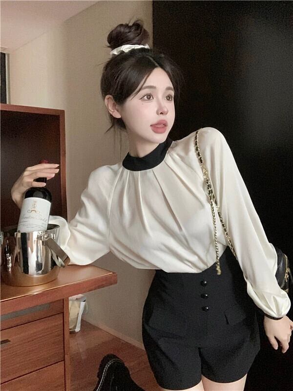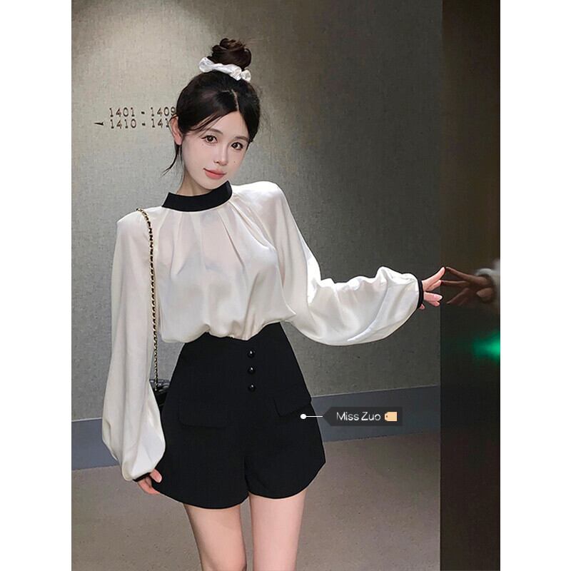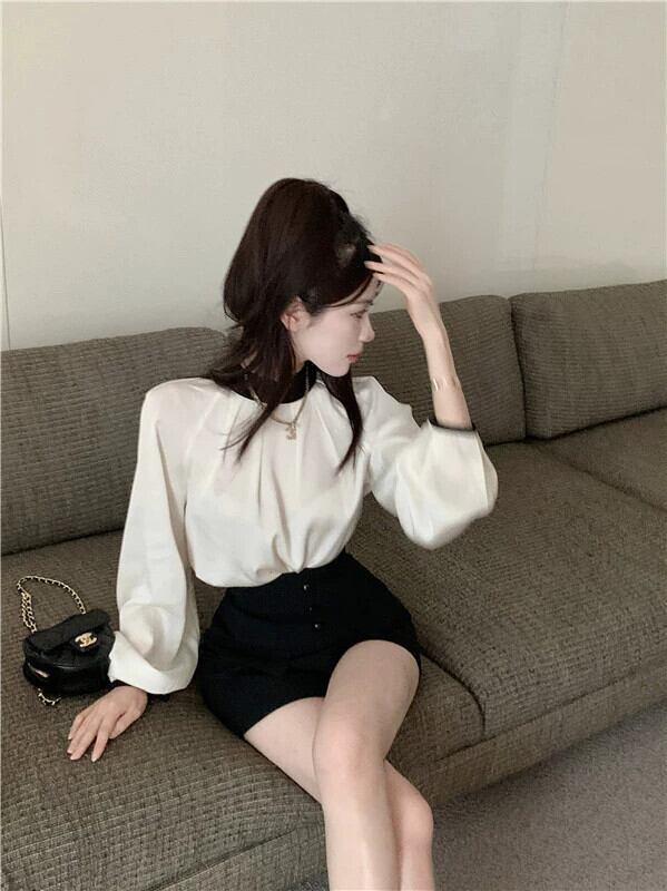 ホワイトアセテート長袖シャツ女性ニッチデザインセンス2023春新作フランスハイレベルシック美しいトップス ロング スプリング 春物 8571658743763741