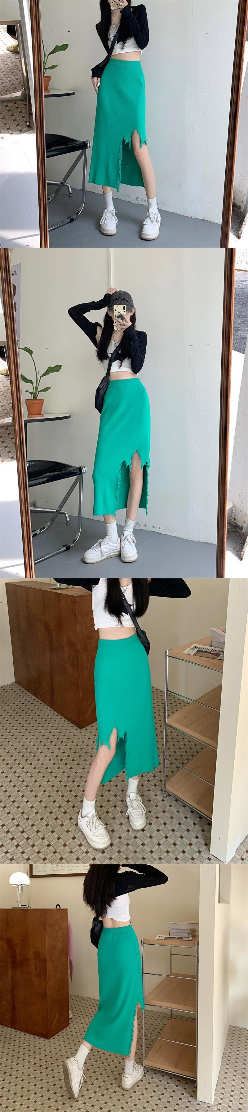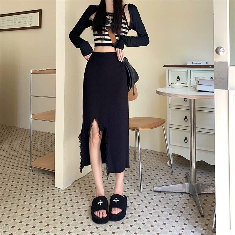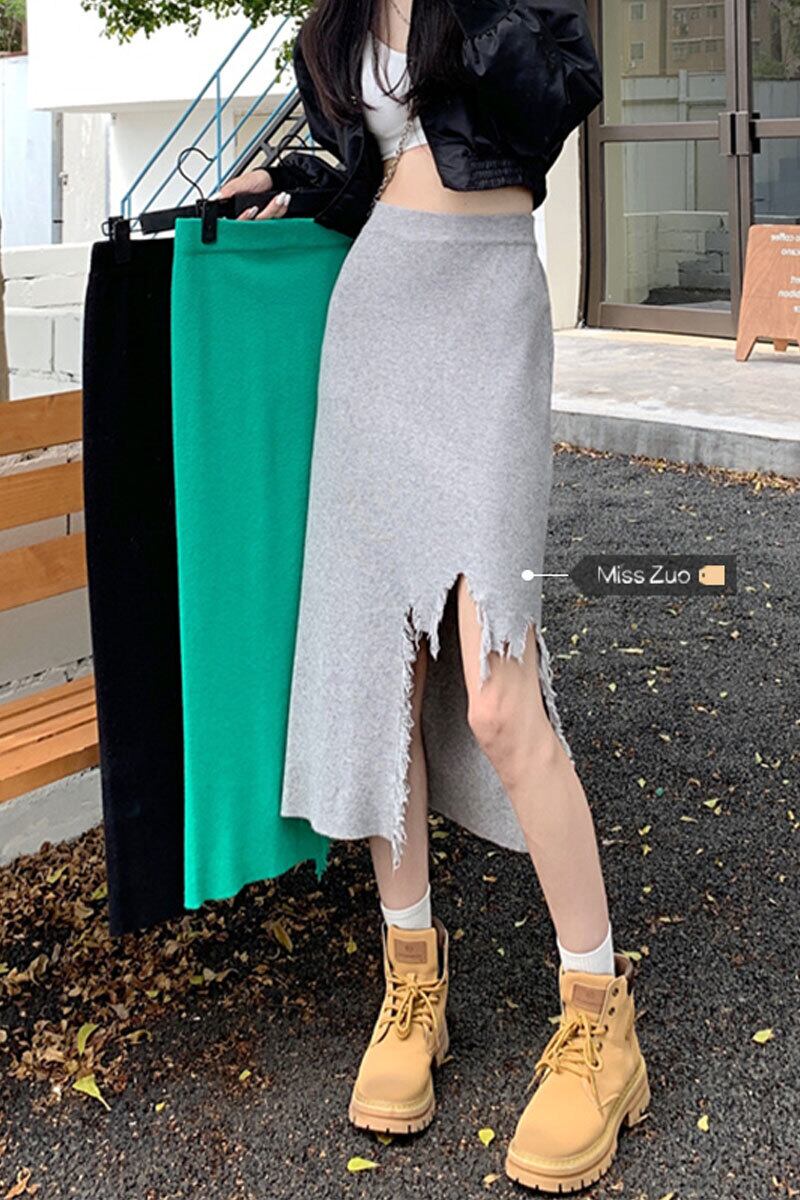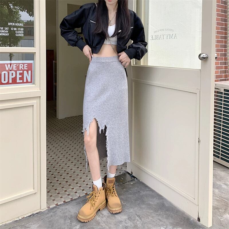 Tel ニットスカート レディース 2023 秋新作 ハイウエスト 薄くて小さい グレー ミドル丈スカート ヒップ付き ハイウェスト オータム 秋物 8571692926358450