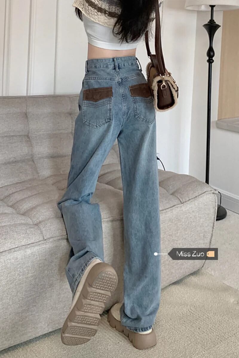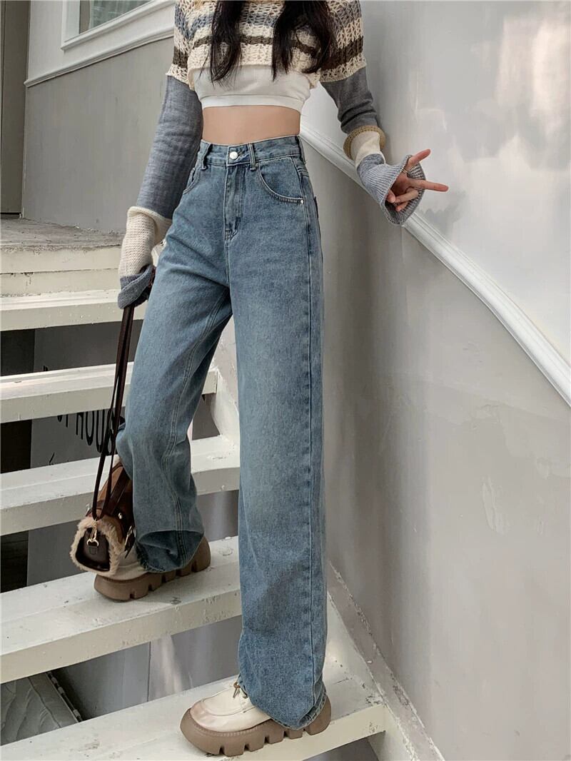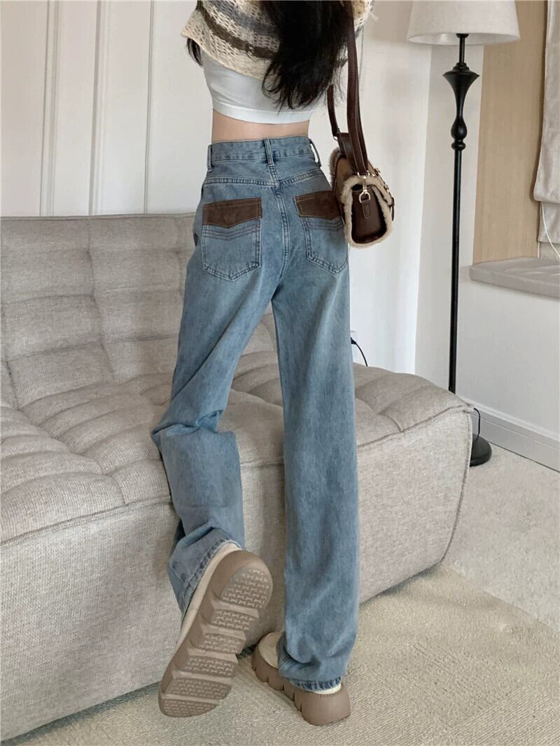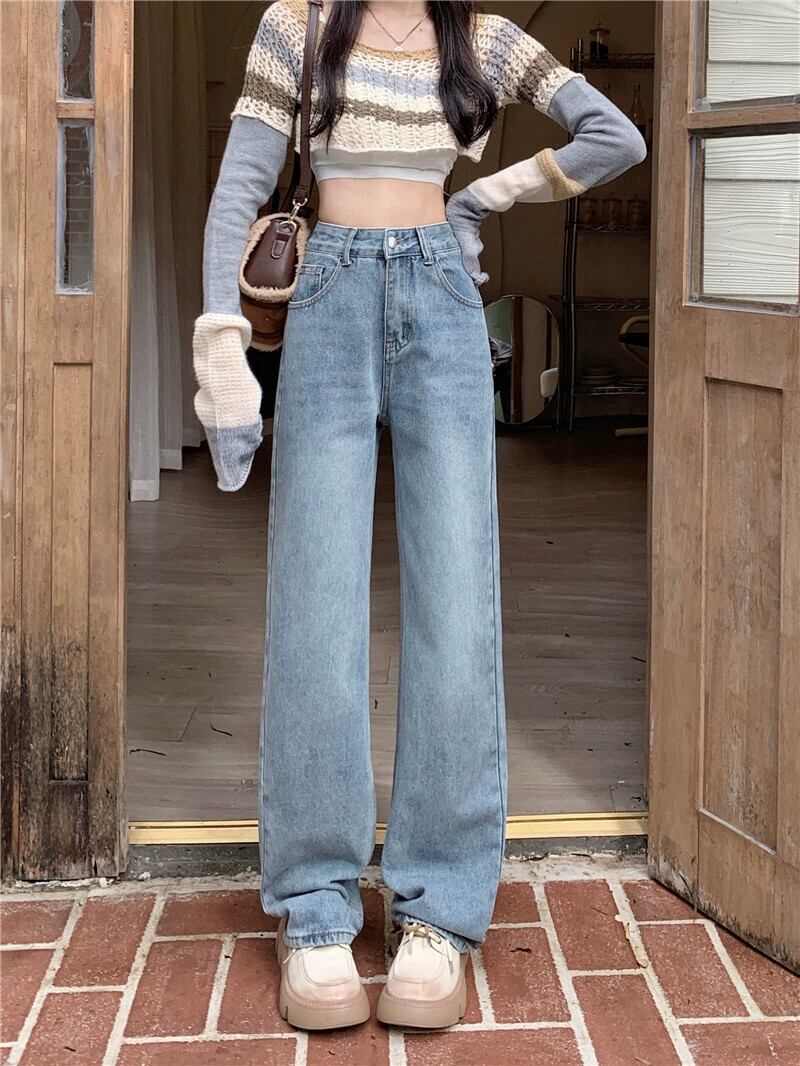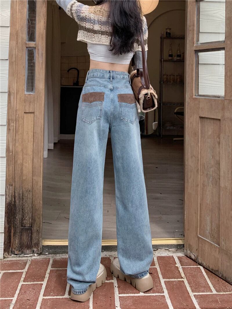 レトロブルージーンズレディースルーズストレート2023春新スタイルハイウエスト痩身ワイドレッグパンツ ハイウェスト スプリング 春物 ワイドパンツ 8571611765297051