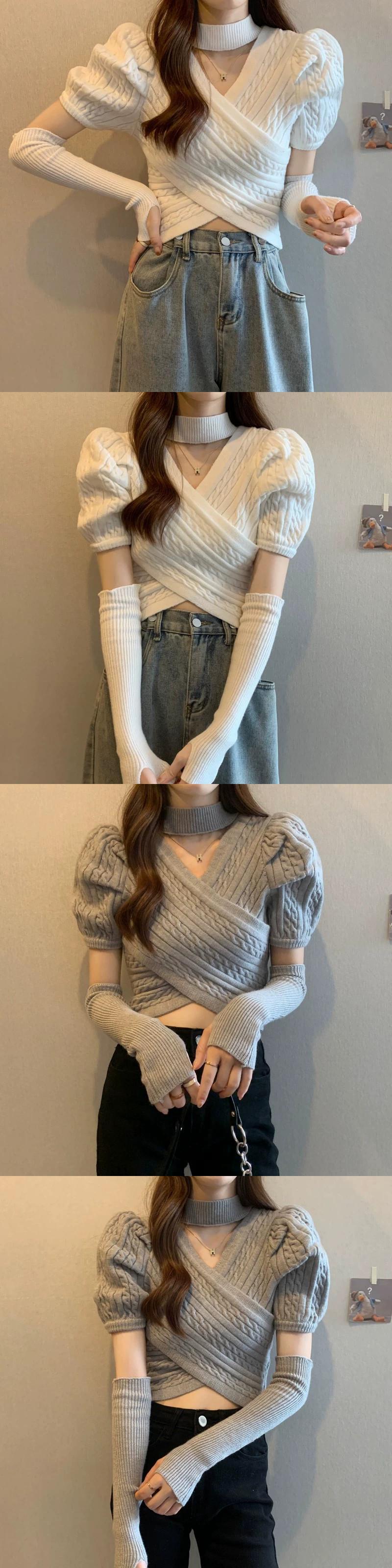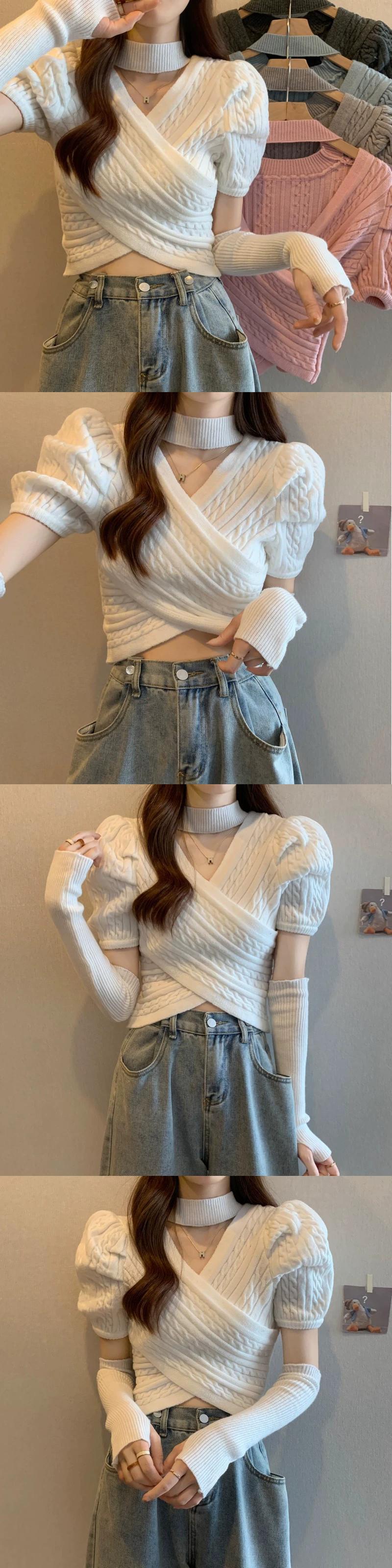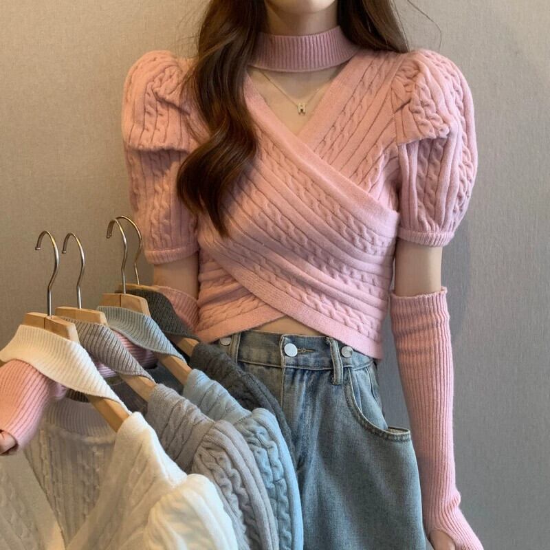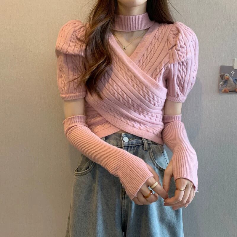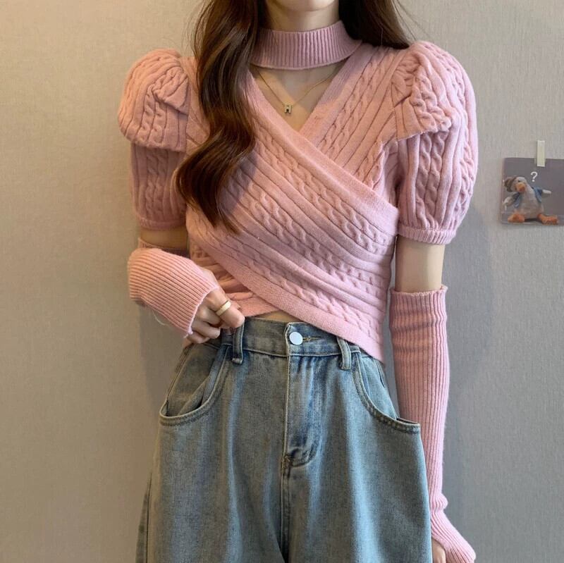 ピンクスリーブセーターレディース春感覚ショートセーター不規則な甘いスパイスガールズユニークシックトップス 大人ガーリー スウィート キュート カジュアル スプリング 春物 857164034541889