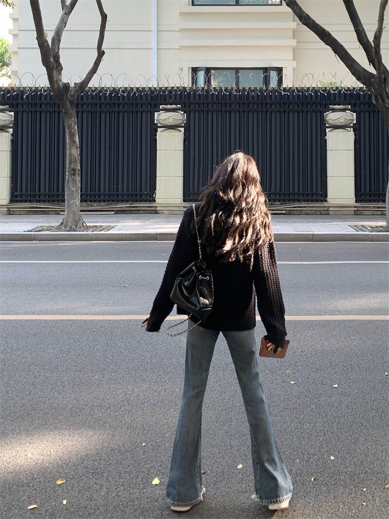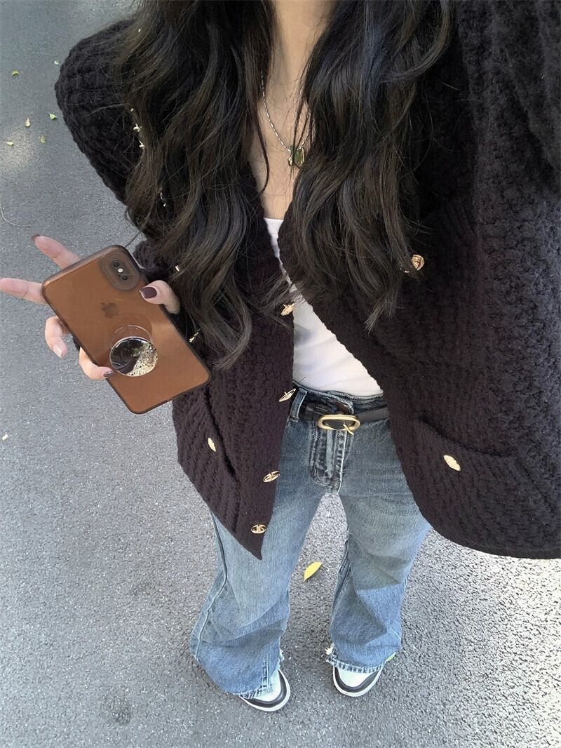 セータージャケット女性春ハイエンドデザインセンスニッチ 2023 新しいフレンチ優しいスタイル黒ニットカーディガン ブラック スプリング 春物 8571633427727067