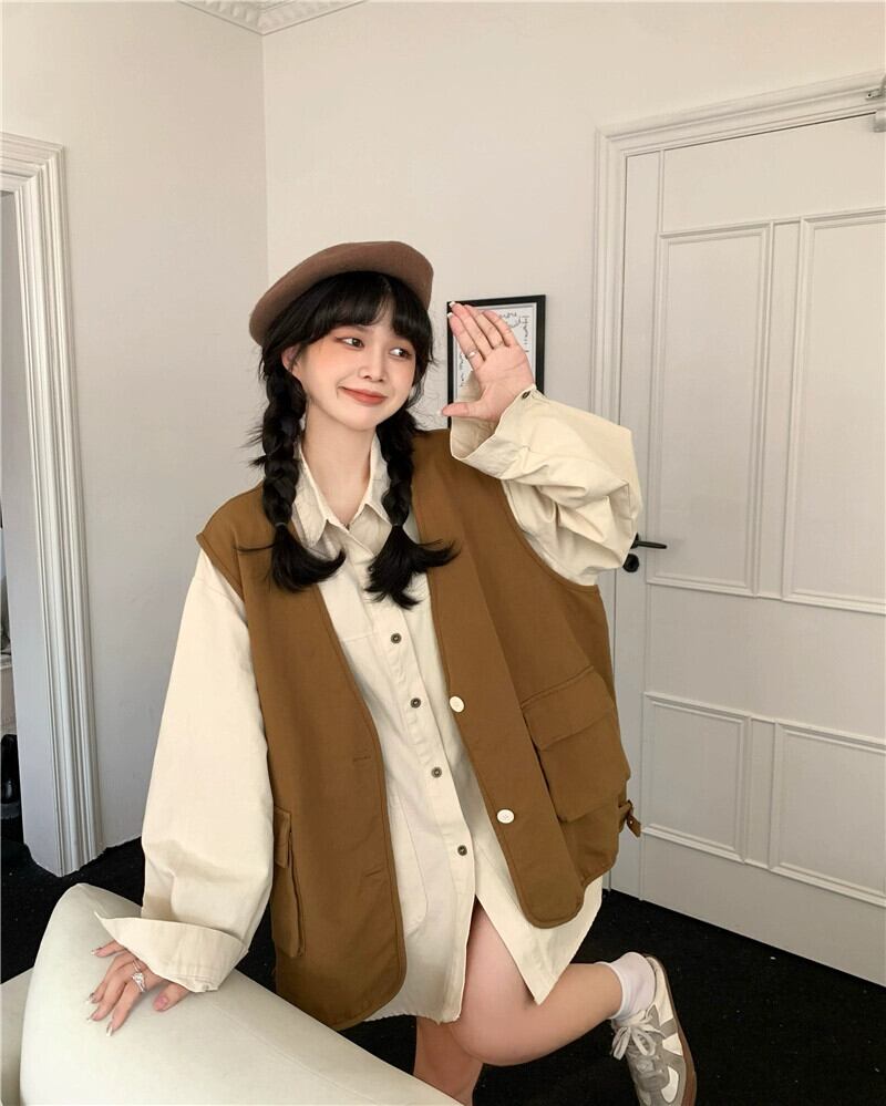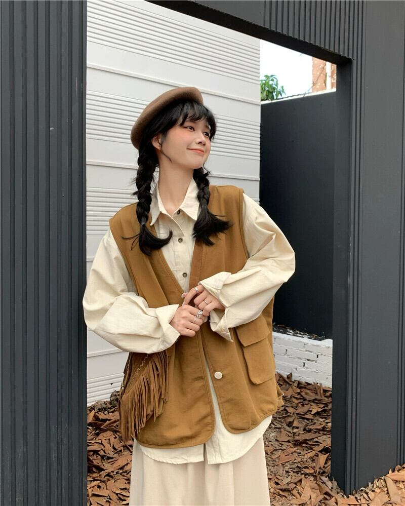 ベスト ジャケット レディース 秋シャツ ベスト付き フレンチ レトロ ノースリーブ 重ね着チョッキ 高級感のあるチョッキニッチ レッド オータム 秋物 8571616390088521