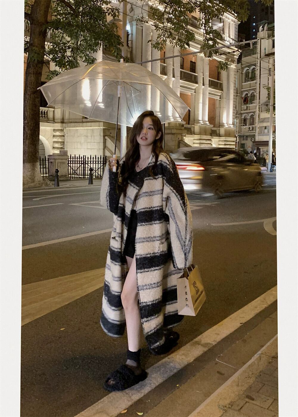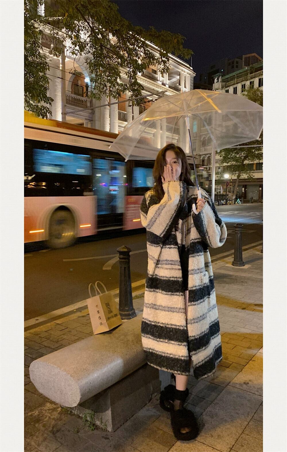 ストライプラムウールウールコートの女性の冬2023新しいスタイルの高級感小爆発ウールコート ウィンター 冬物 8571694873703881