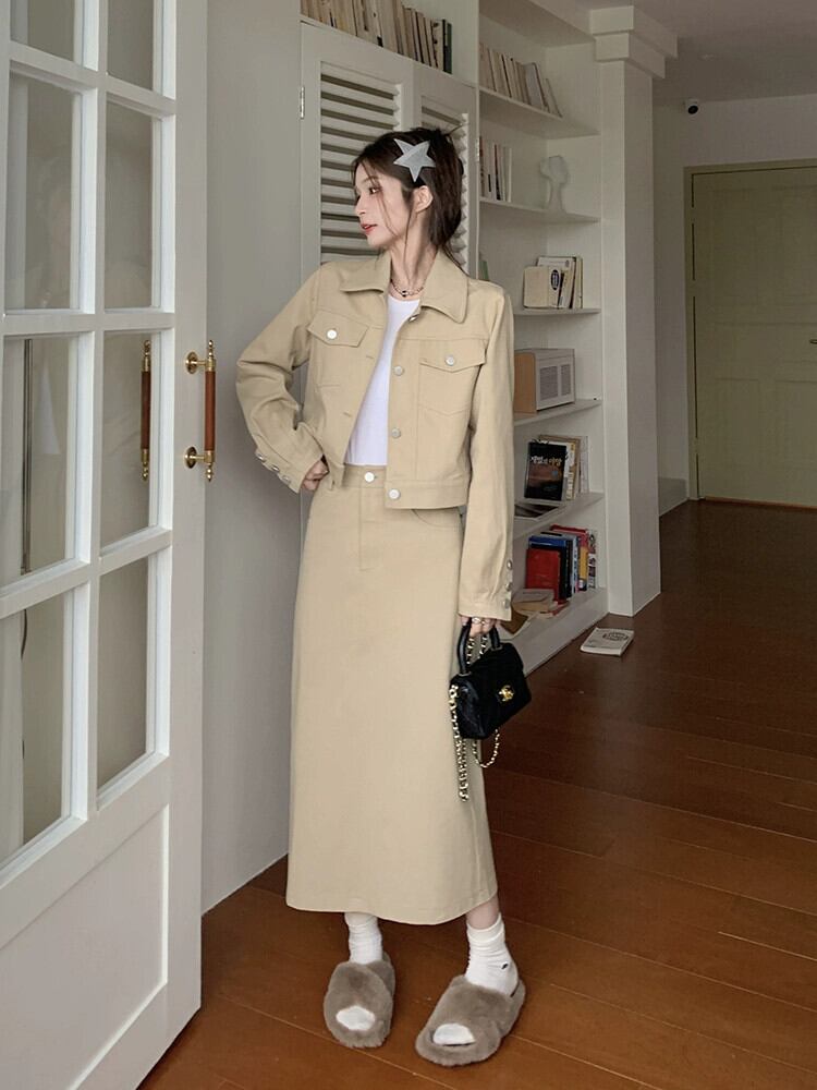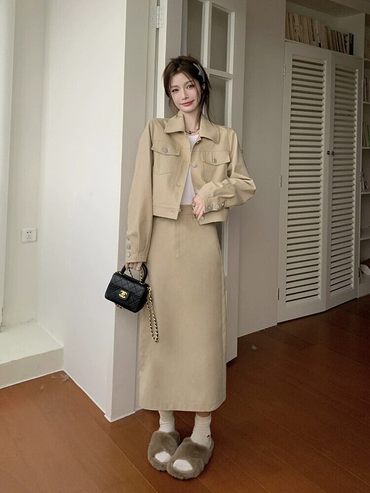 カーキツーリングジャケット女性 2023 春の新レトロ香港スタイルのシックな高品質の小さなショートトップ スプリング 春物 8571670538809575