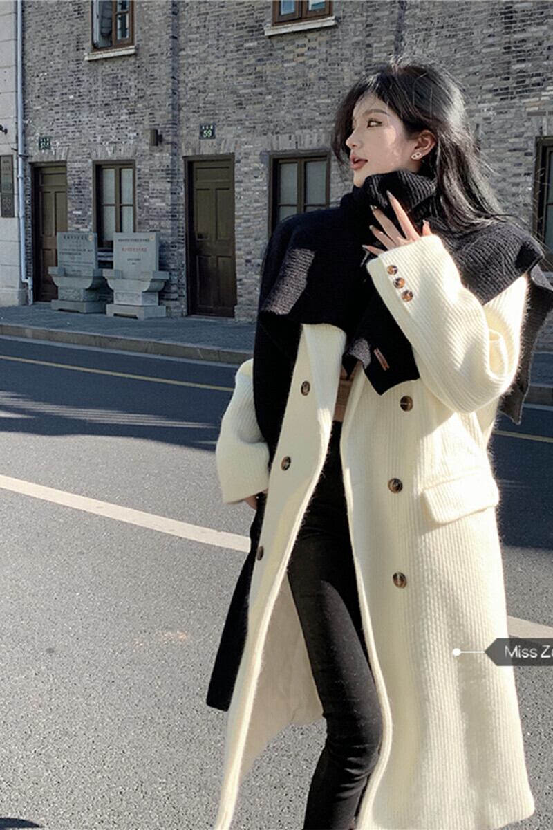 ホワイトウールコートレディース秋冬キルティング2023新しいデザインセンス小さなロングウールコート オータム 秋物 ウィンター 冬物 8571671509231436