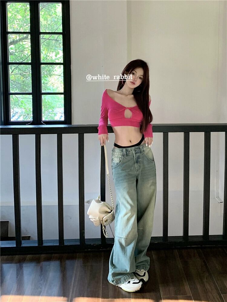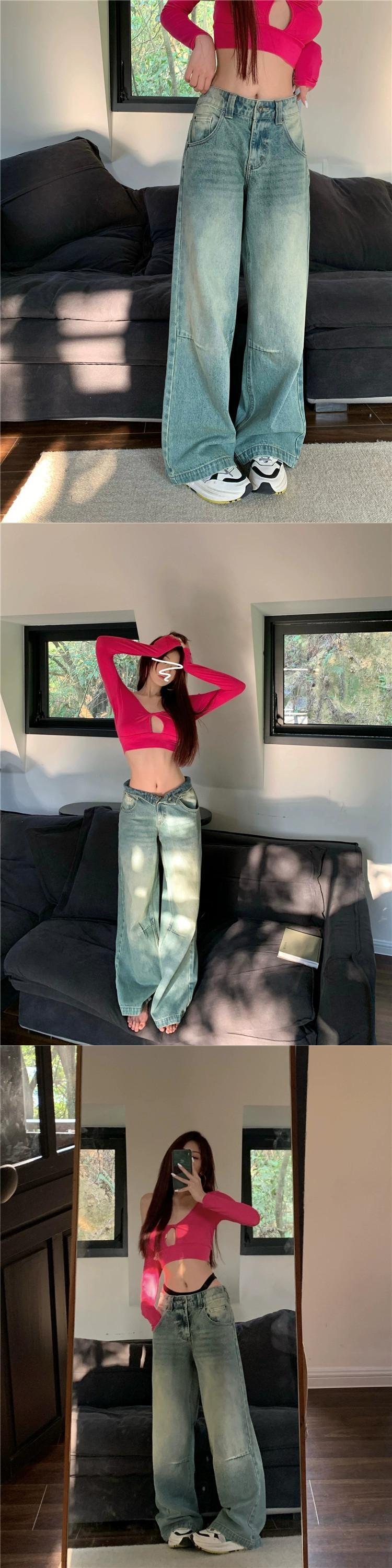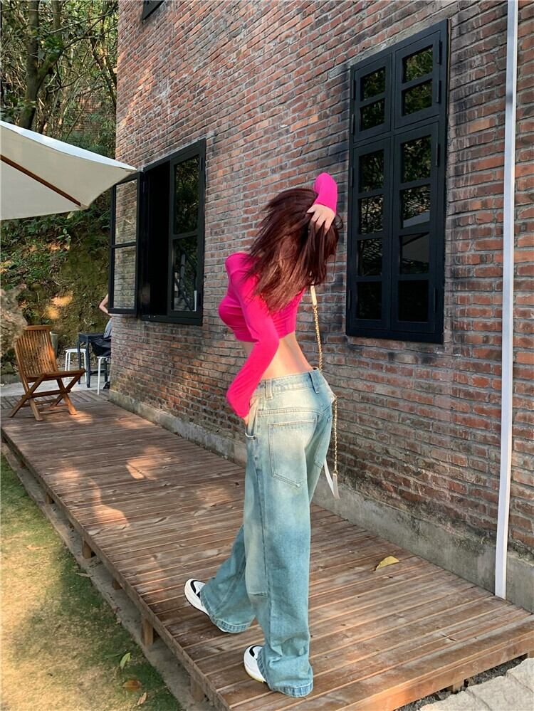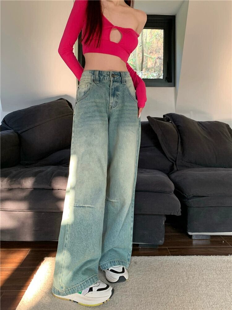レトロブルージーンズレディースルーズストレート春2023新しいネットレッドスタイル小男床拭きワイドレッグパンツ スプリング 春物 8571626993067514