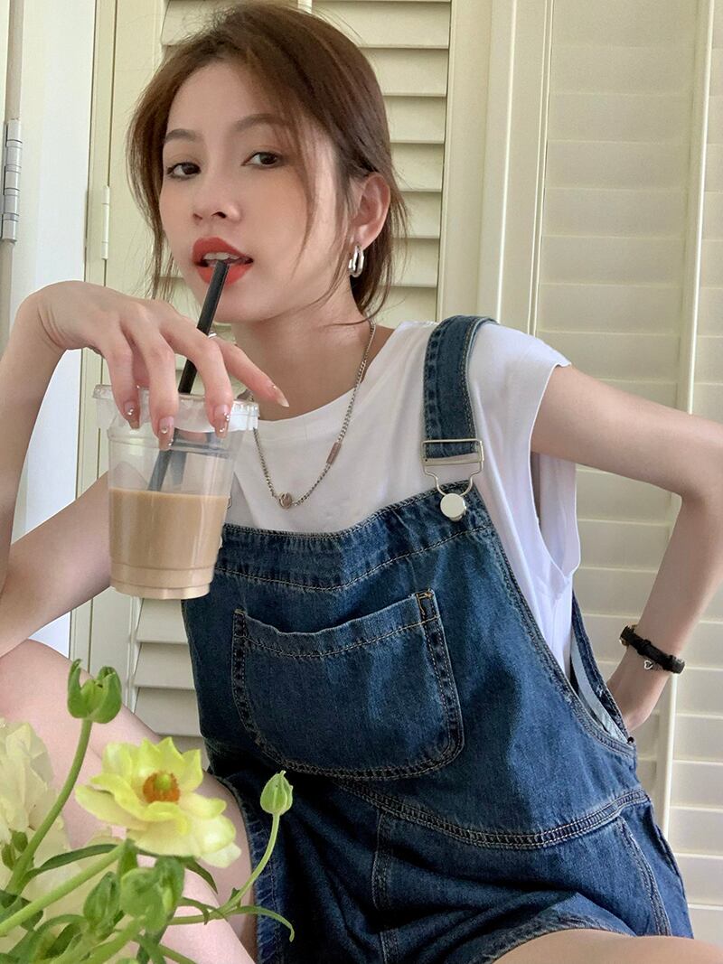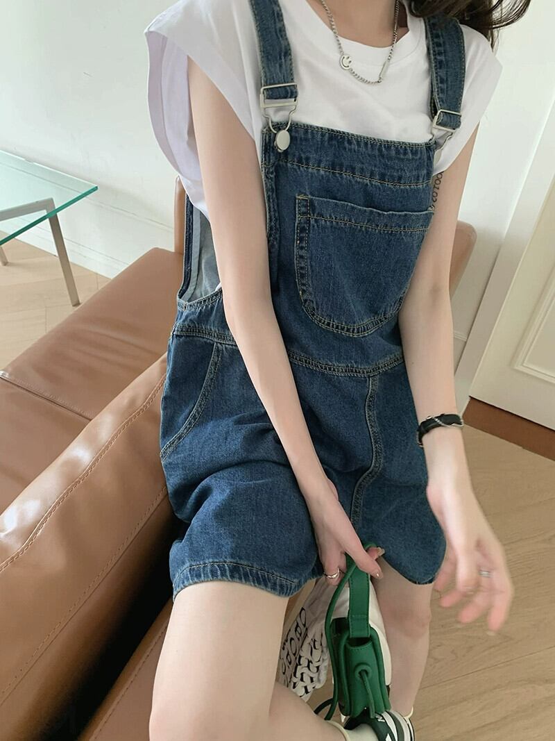 デニム オーバーオール ショートパンツ レディース 小さいバージョン ルーズ サマー ミルクワーリング ストレート チューブ スリム 5点式 ワイドレッグ パンツ 夏物 ショーツ ブルマー ワイドパンツ 8571682870967509