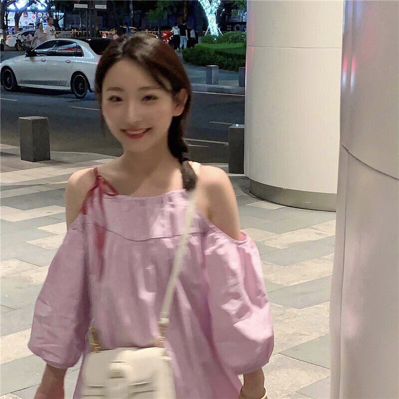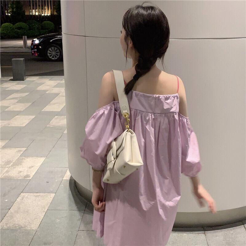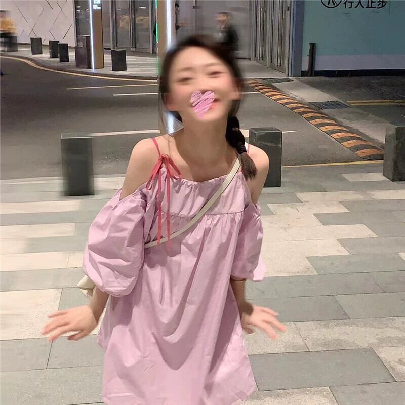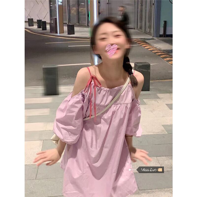 オフショルダーサスペンダードレスレディース2023年夏新作ニッチデザインセンス甘くて年齢を軽減する小さな人形スカート 大人ガーリー スウィート キュート カジュアル サマー 夏物 8571632643904992