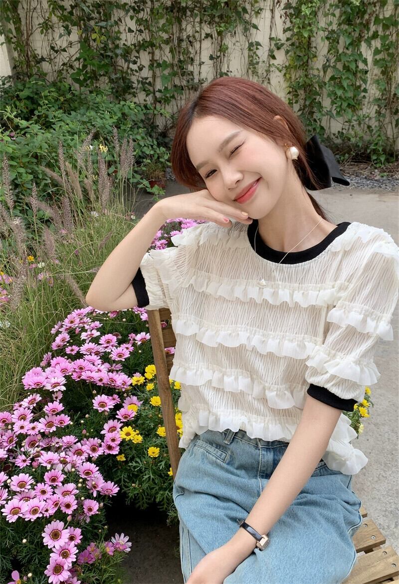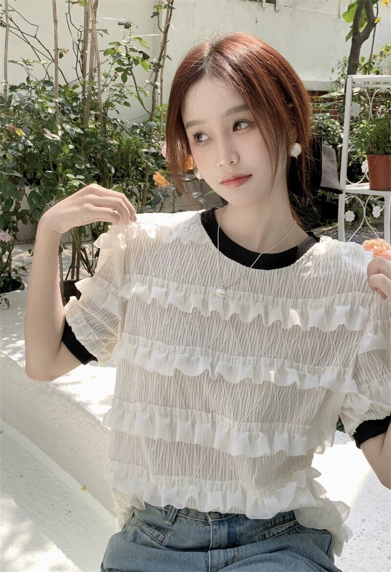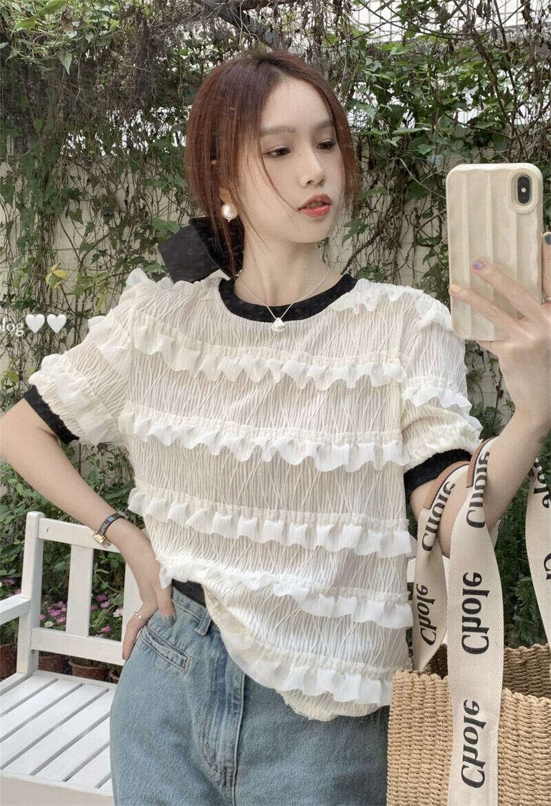 白半袖Tシャツレディース2023年夏新デザインセンスニッチ美しいユニークなシフォントップ超素敵 ホワイト サマー 夏物 8571678302517887