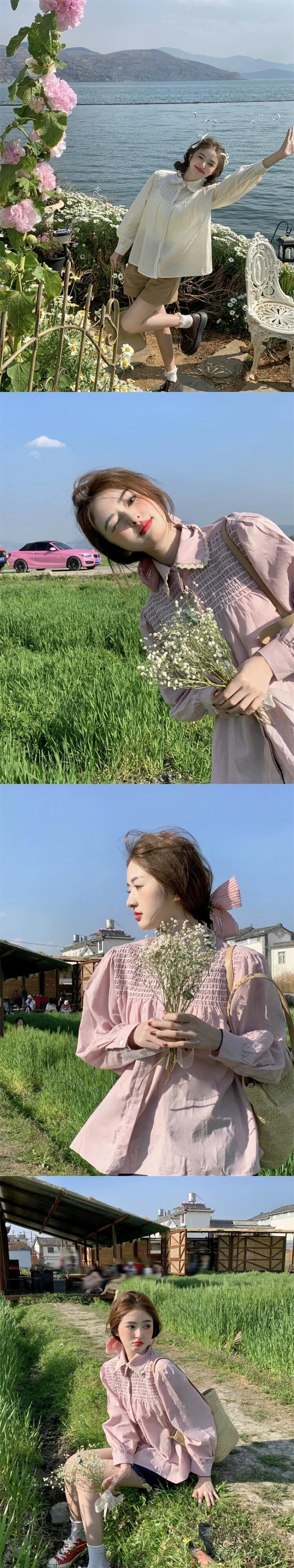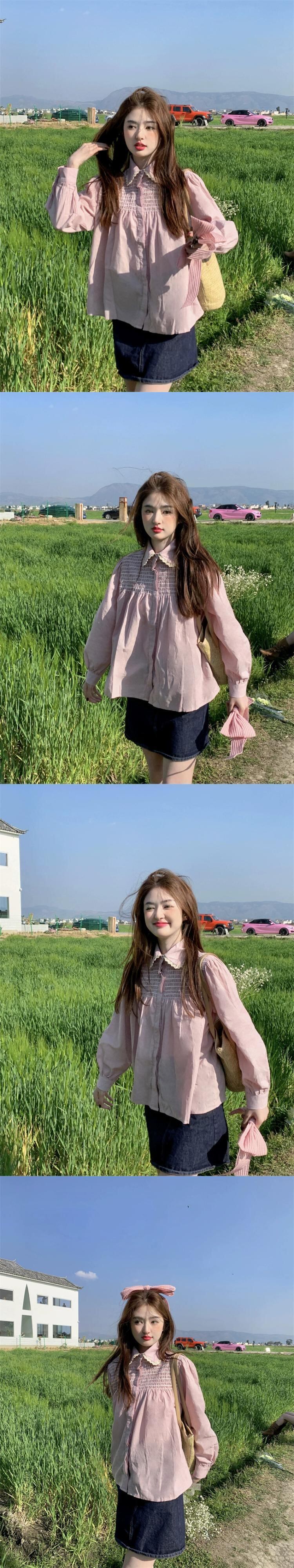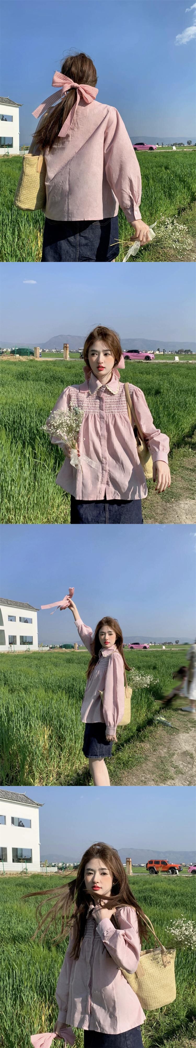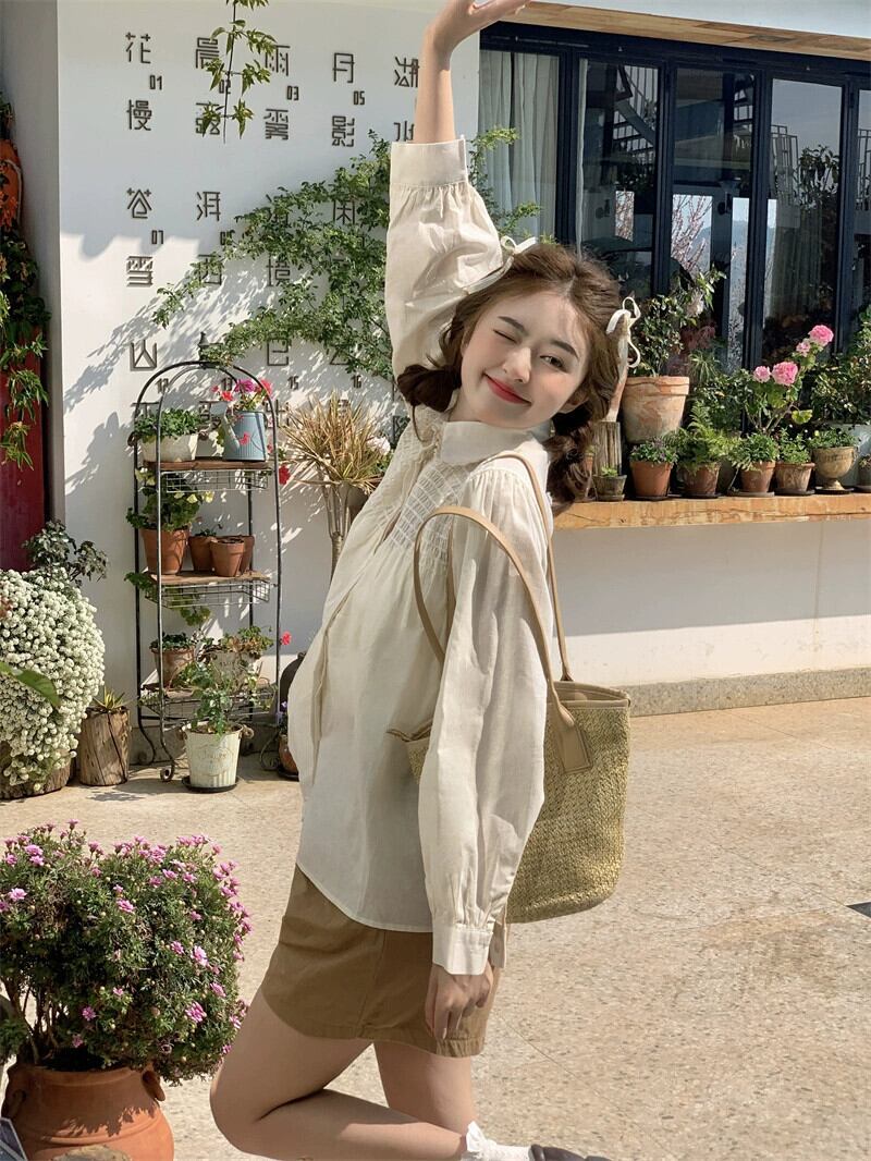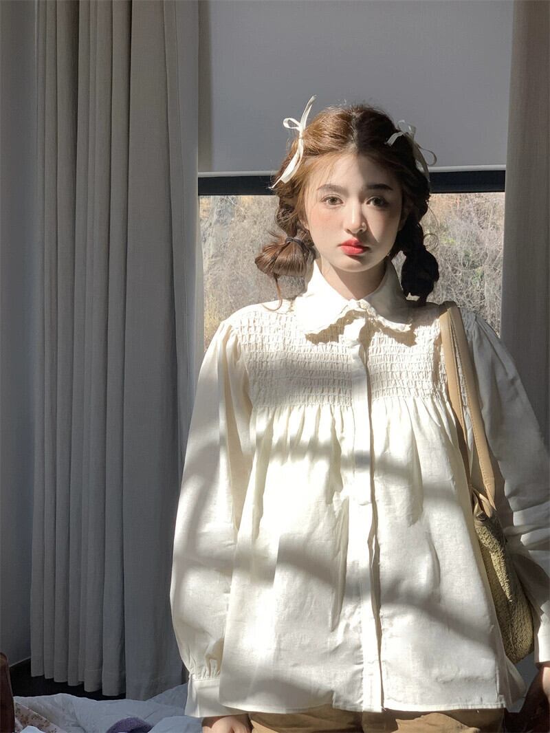ホワイトドールカラーシャツ女性デザインセンスニッチ2023春新作甘い小さな長袖トップ ロング 大人ガーリー スウィート キュート カジュアル スプリング 春物 8571677710735563