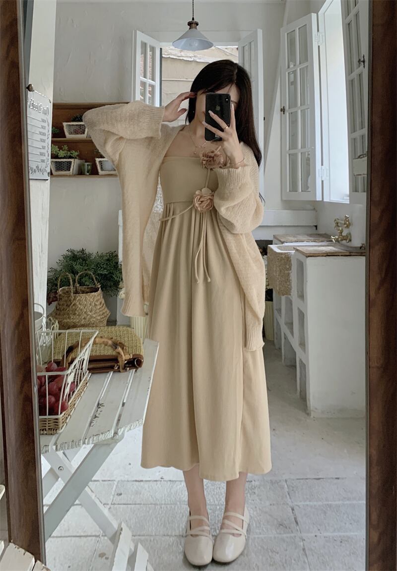 シーサイドチューブトップドレス女性 2023 初春の新しい気質ハイエンドデザインセンスニッチ美しいウエストスカート スプリング 春物 8571650917088965