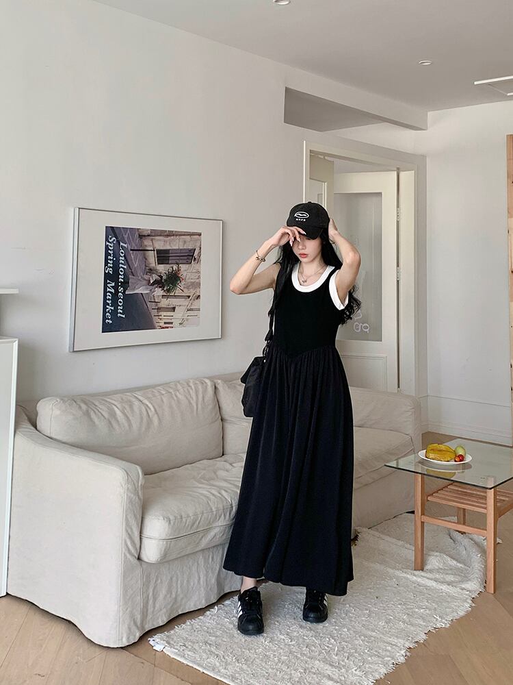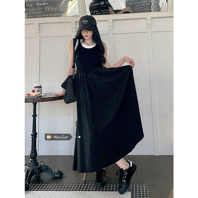 フェイクツーピースベストドレス女性小男性夏2023新しい気質ハイエンド感覚ウエスト痩身ロングスカート サマー 夏物 8571616232558226