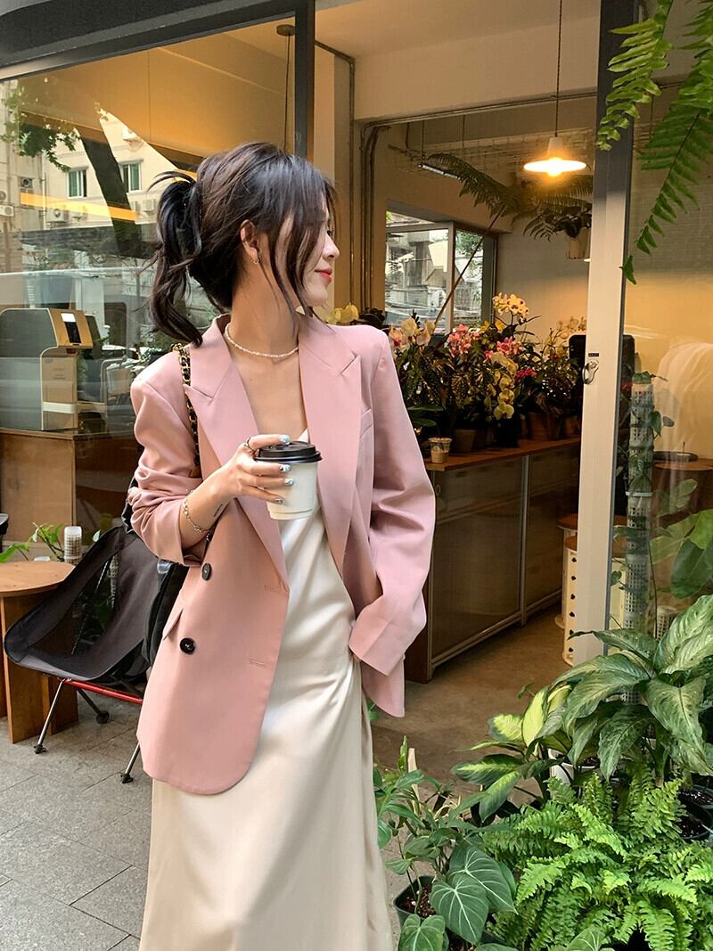 ピンクのミドル丈のスーツジャケットの女性の2023年春の新しいデザインセンスのニッチハイエンドスタイルのカジュアルスーツ スプリング 春物 8571692939418125