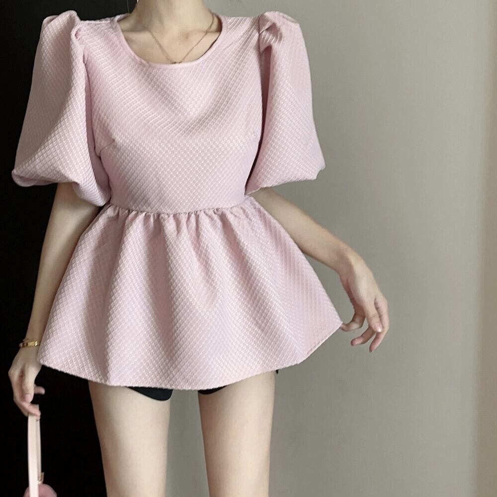 バックレスドールシャツトップレディース2023夏新デザインセンスニッチフレンチスイートシックパフスリーブシャツ 大人ガーリー スウィート キュート カジュアル サマー 夏物 857167612459015