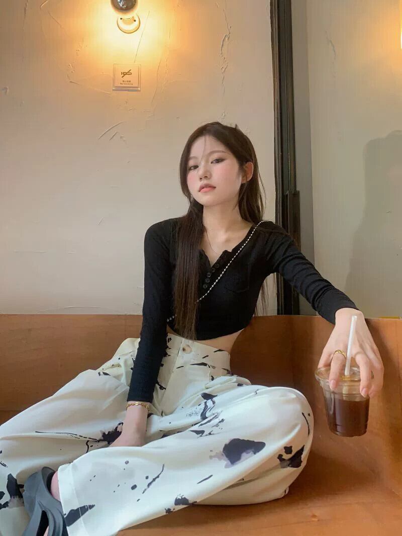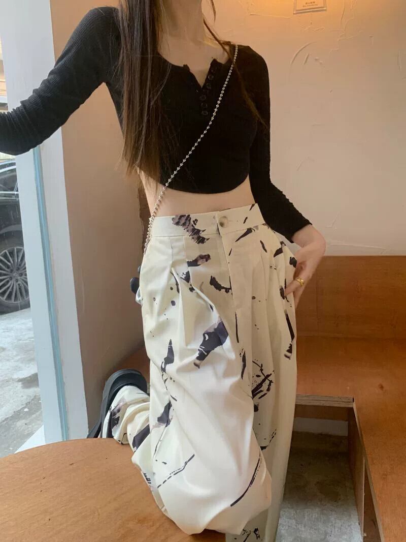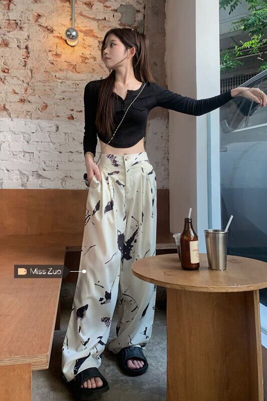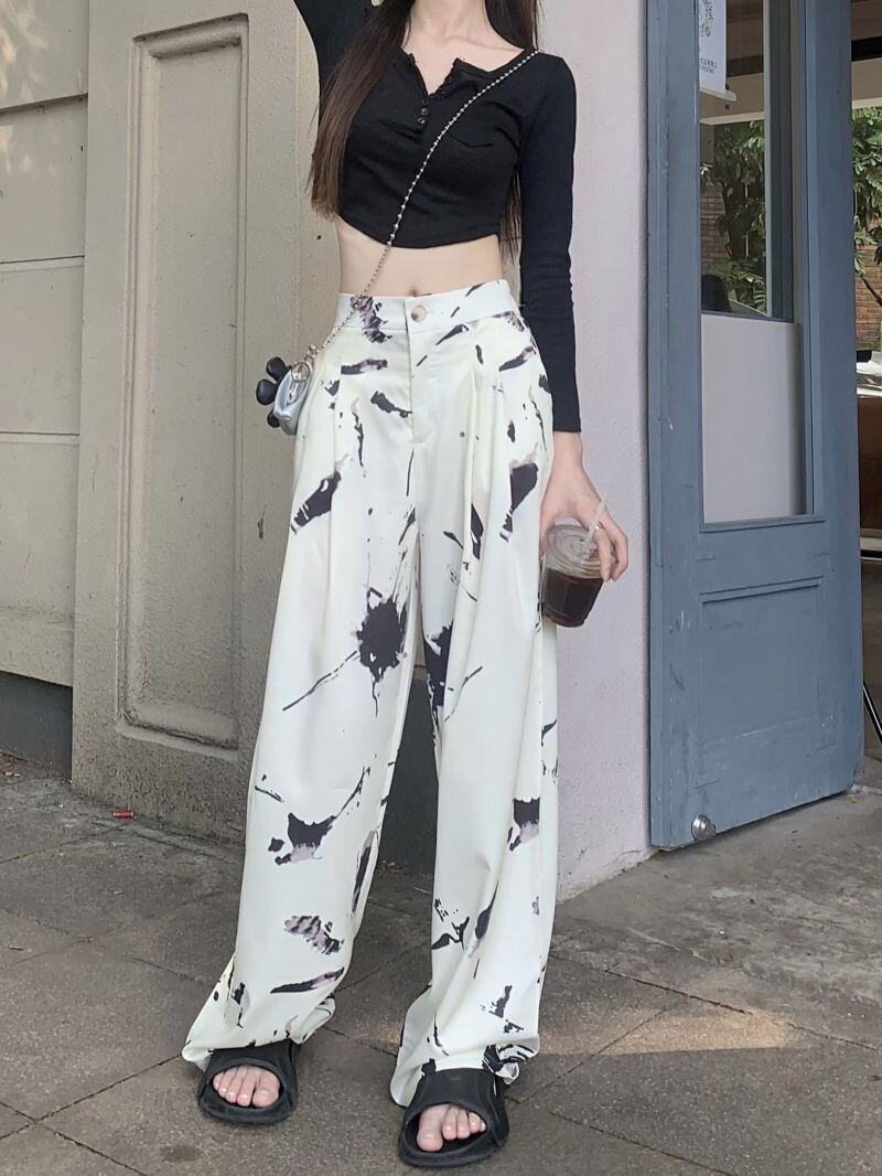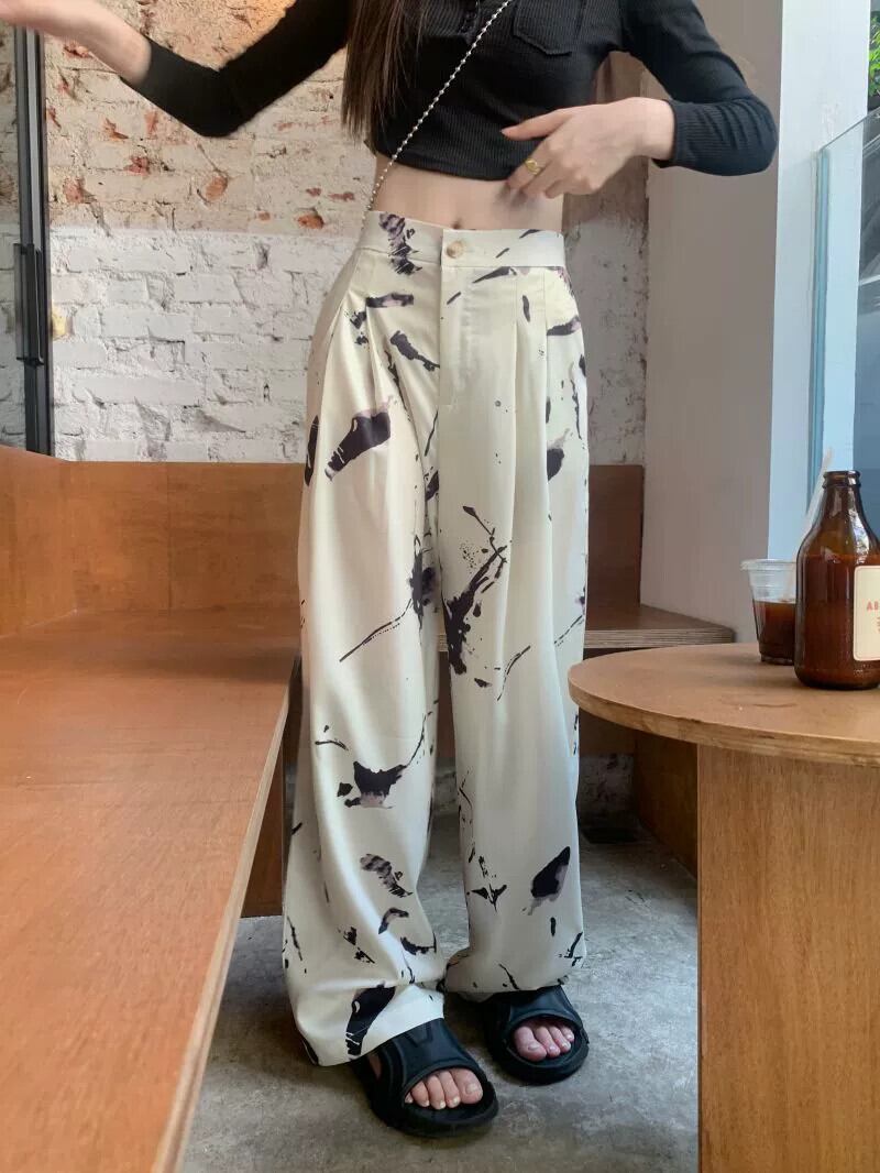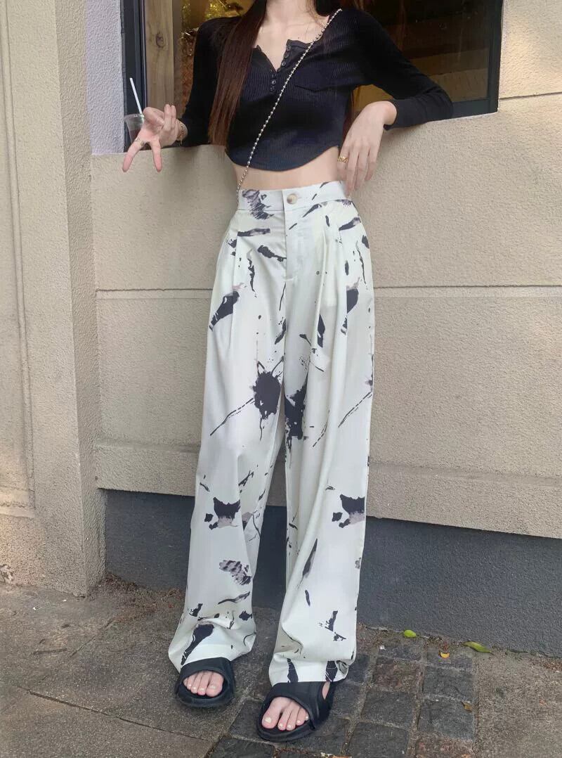 タイダイワイドレッグパンツレディースハイウエストドレープ2023春新デザインセンスニッチルーズストレートカジュアルモップパンツ ハイウェスト スプリング 春物 857163273405759