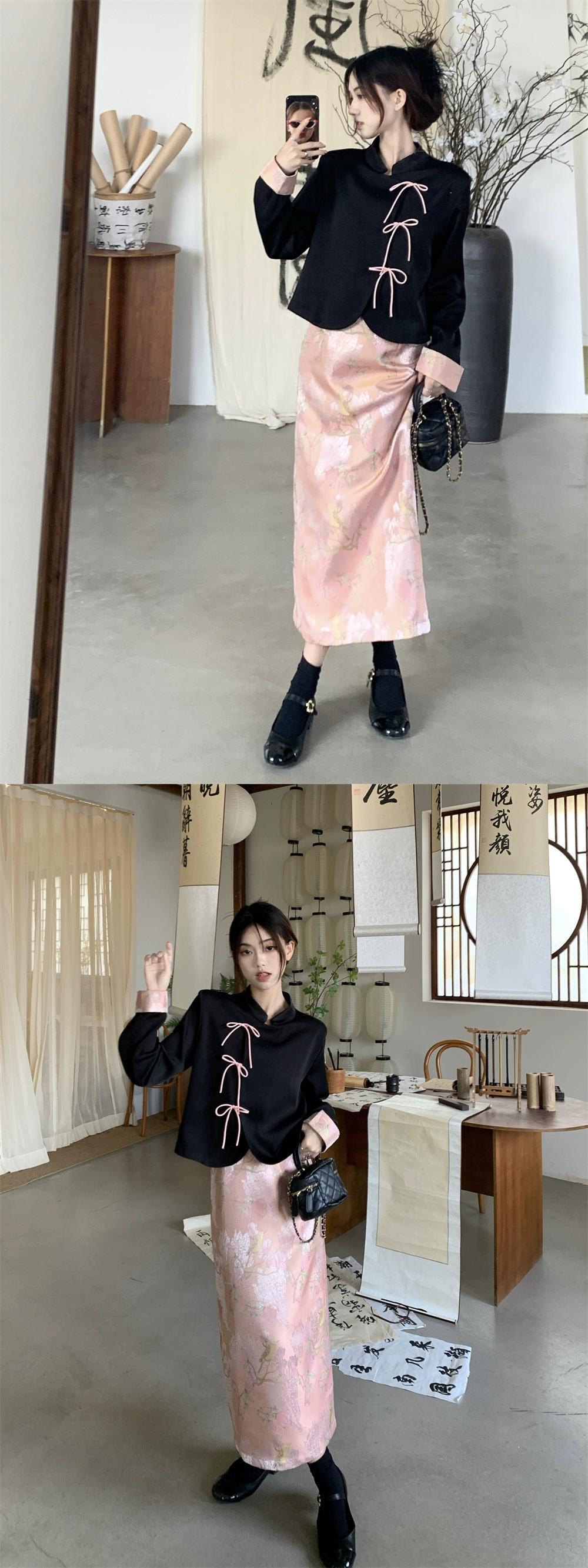 改良されたチャイナドレストップ女性のデザインセンスニッチ春新中国風国民風レトロ気質黒長袖シャツ ロング ブラック スプリング 春物 8571625127503250