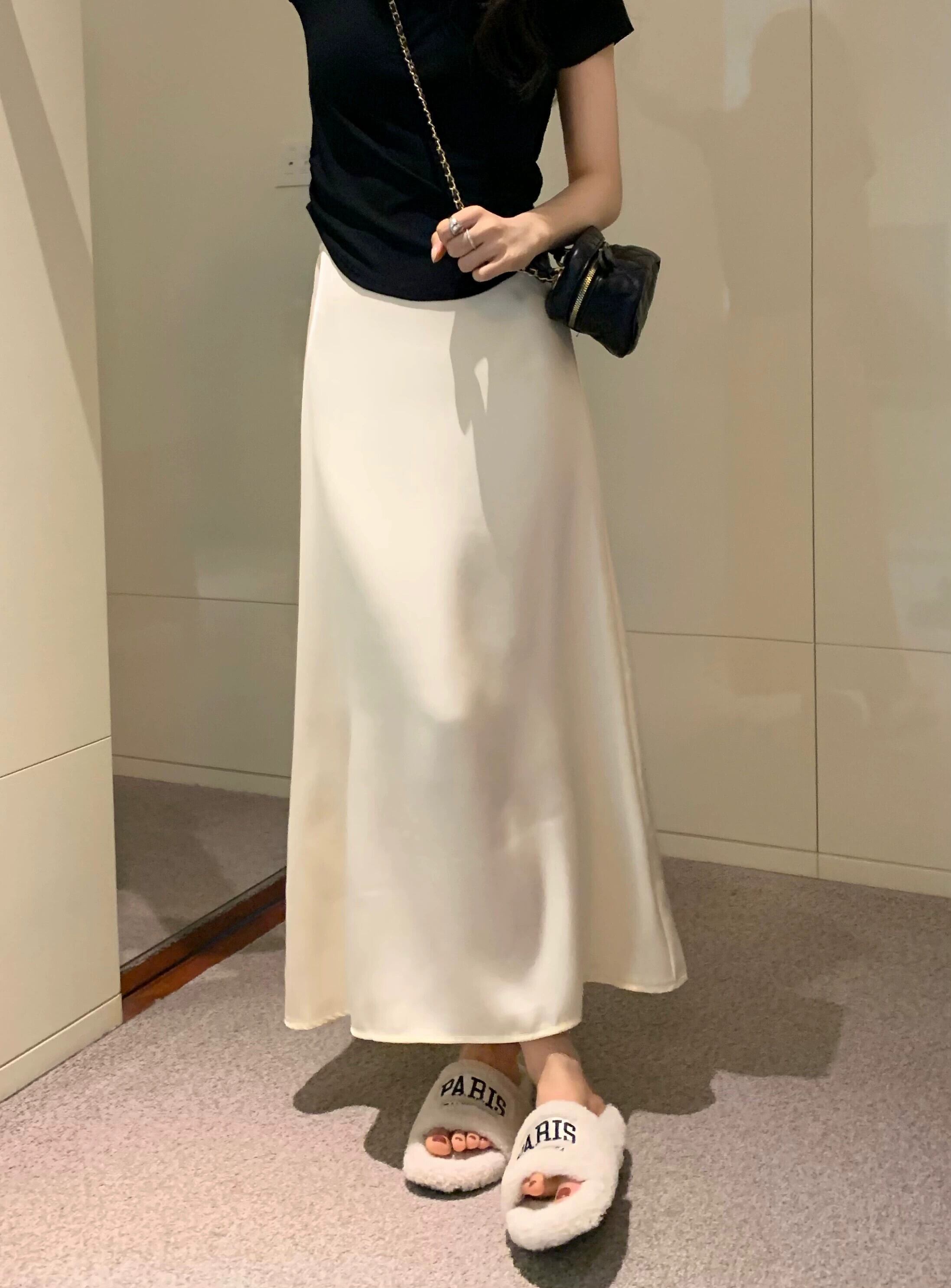 アセテートサテンスカート レディース ハイウエスト Aラインスカート 夏 小柄 高品質 ピンク ミドル丈 ヒップスカート ハイウェスト サマー 夏物 8571667557317141