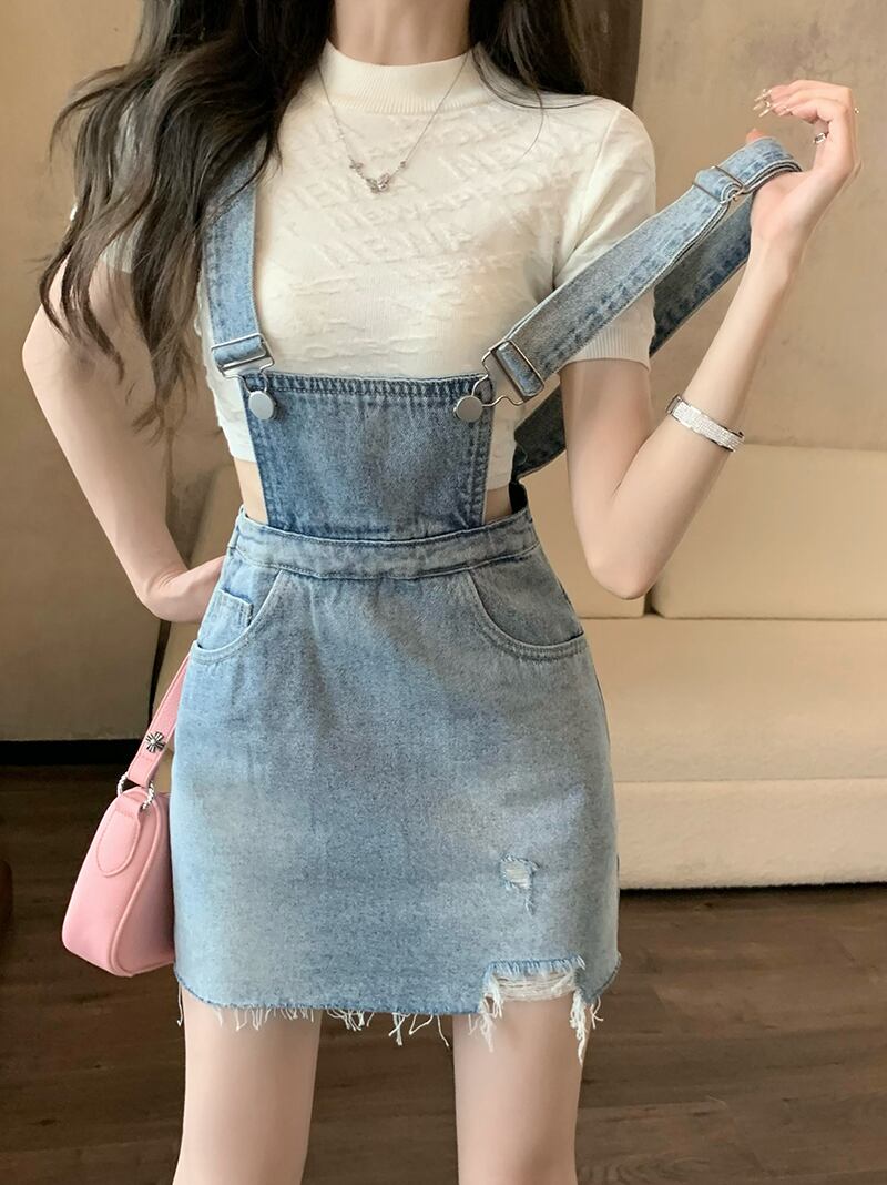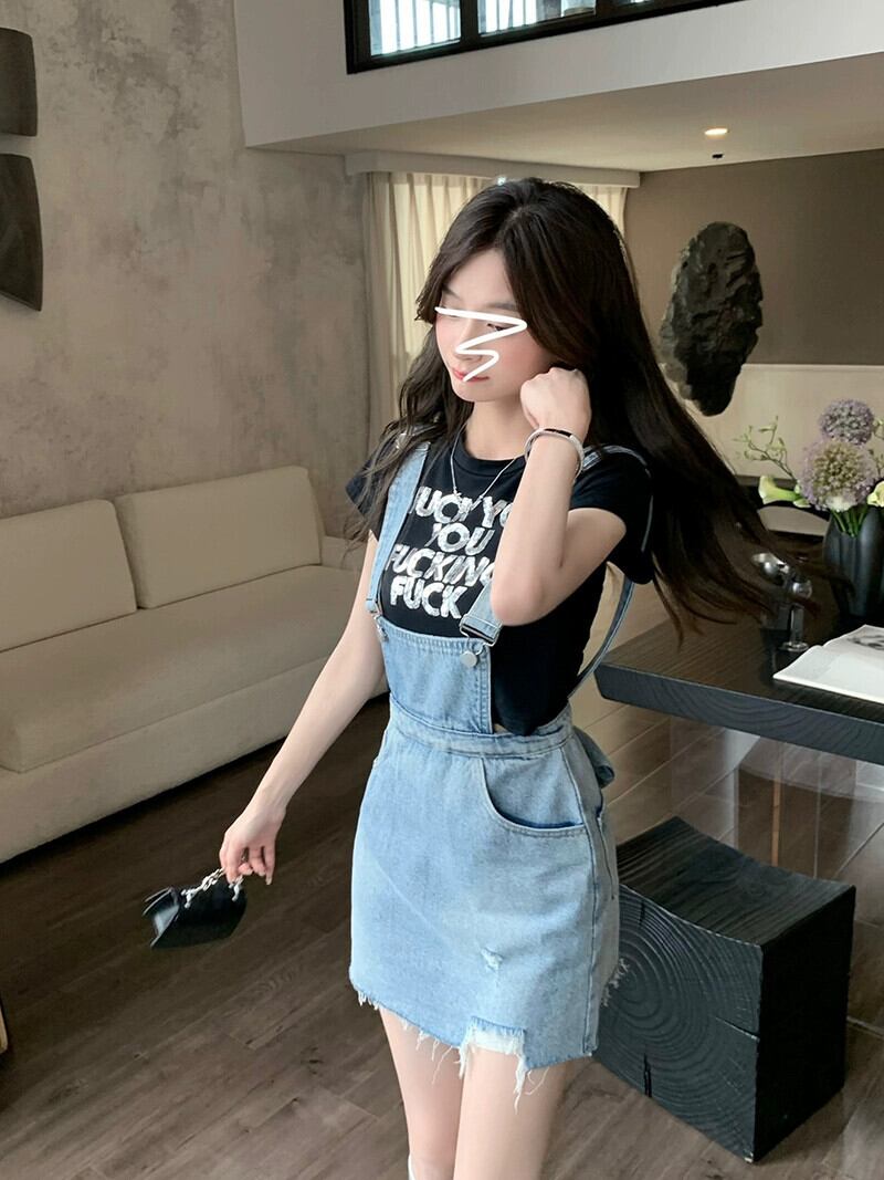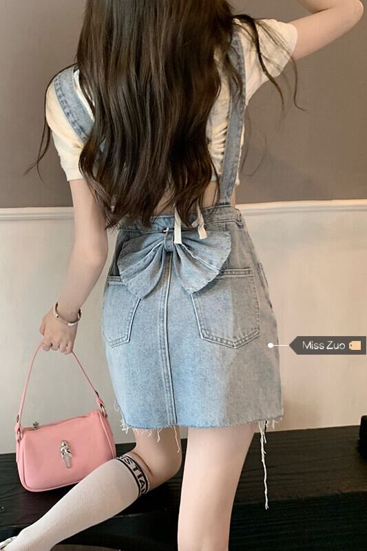 デニムストラップドレス女性小男性夏 2023 新デザインセンスニッチちょう結び A ラインショートスカート リボン サマー 夏物 Aライン 8571660286972752