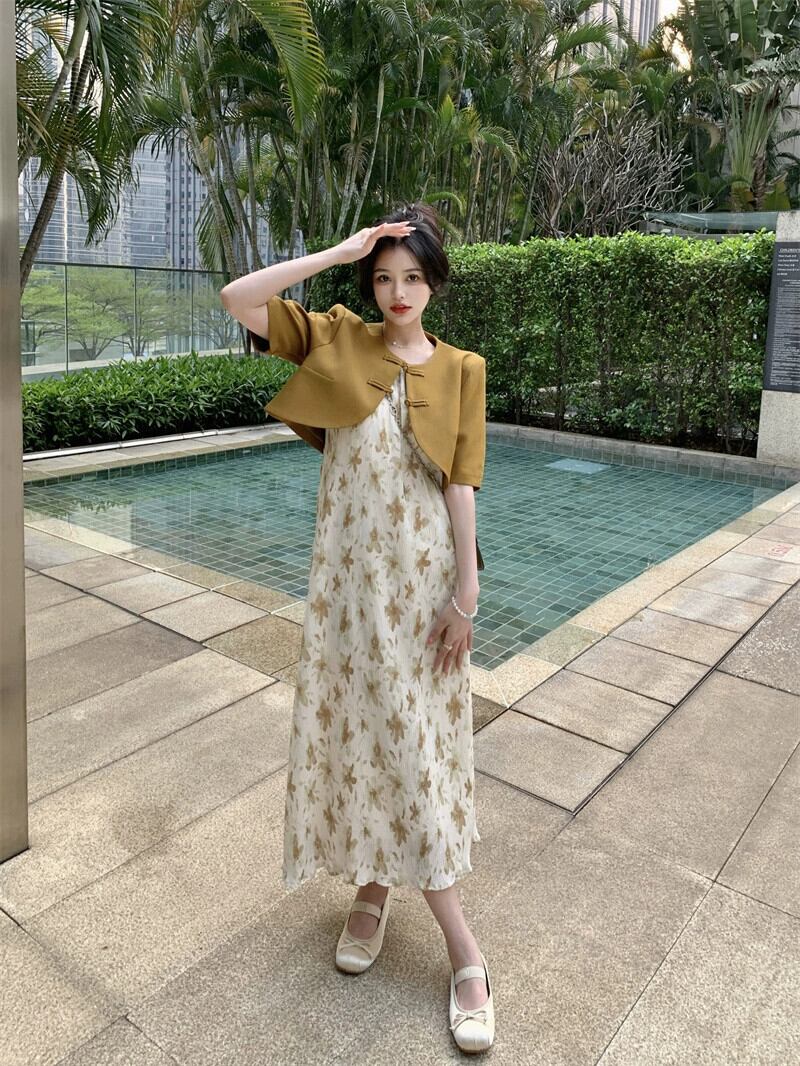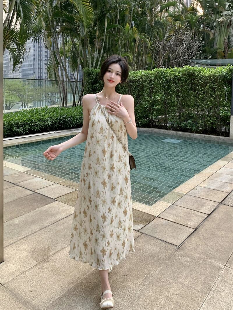 花柄スリングドレスの女性の 2023 夏の新しいフレンチスタイルの優しいスタイルの気質ハイエンドの美しいロングスカート サマー 夏物 8571657767574214