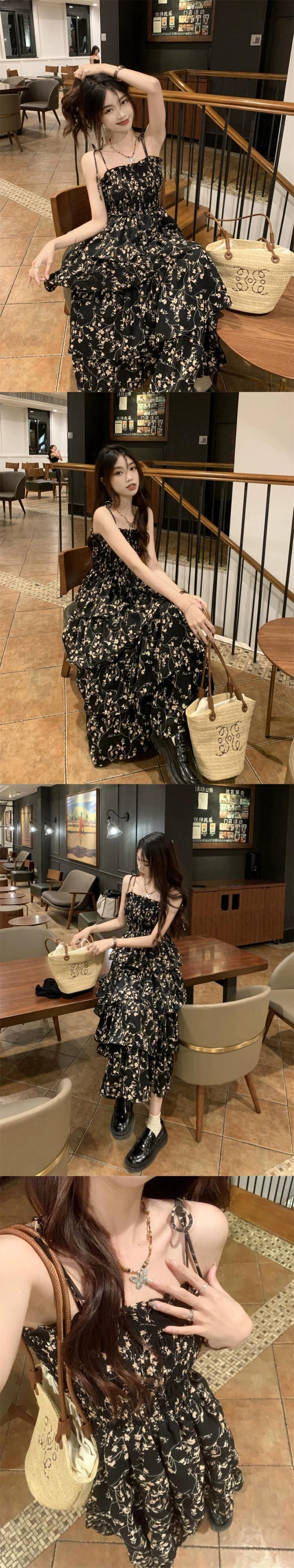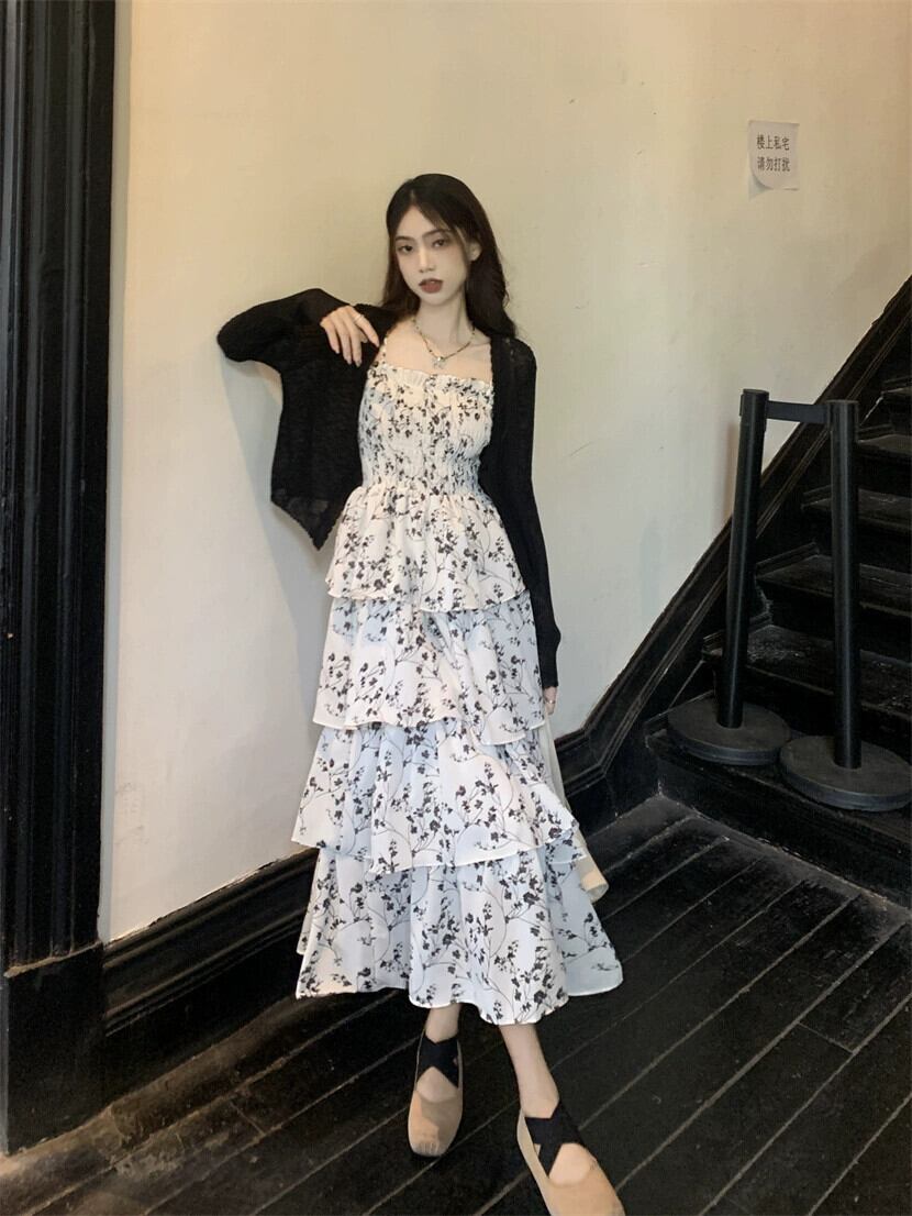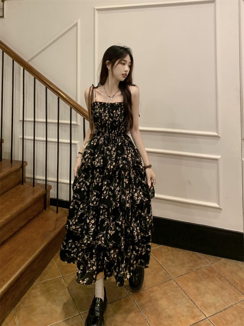 花柄スリングドレス女性の夏のニッチデザインセンス2023新しいティーブレイクフレンチ優しいケーキロングスカート サマー 夏物 8571690278048059