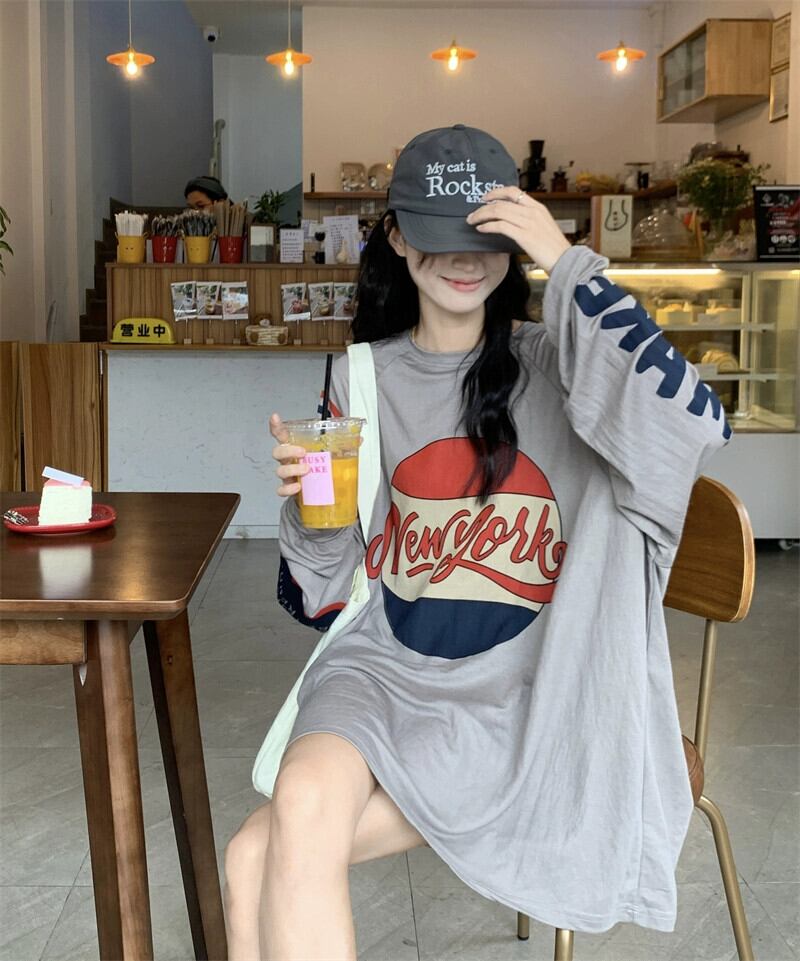 日焼け止め長袖Tシャツ レディース 夏 新しいデザインセンス ニッチ アメリカン レトロ ミドル丈 ボトムス ボトム欠トップ ロング サマー 夏物 8571697337073356