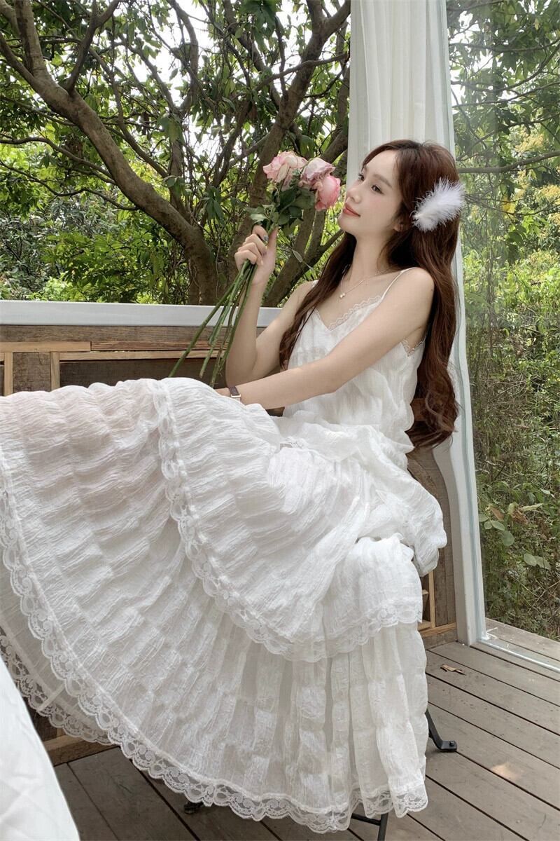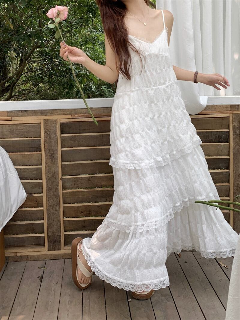 パープルスリングドレス女性の夏の海辺の休暇ビーチスカート優しい風美しいスーパーフェアリーケーキロングスカート サマー 夏物 8571675246373406