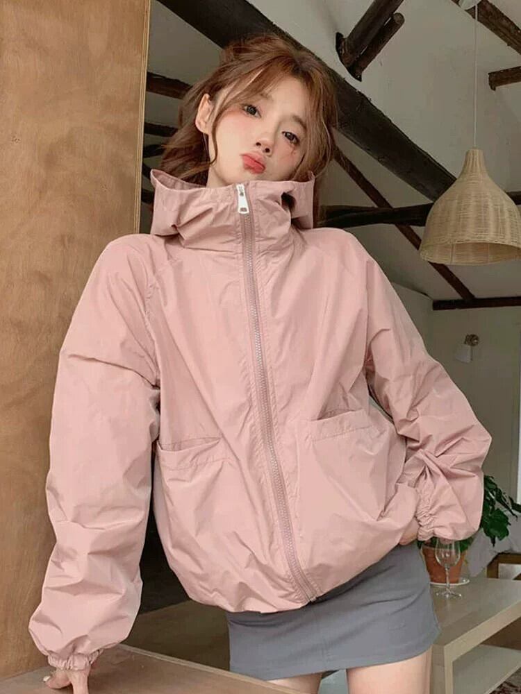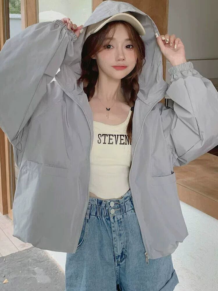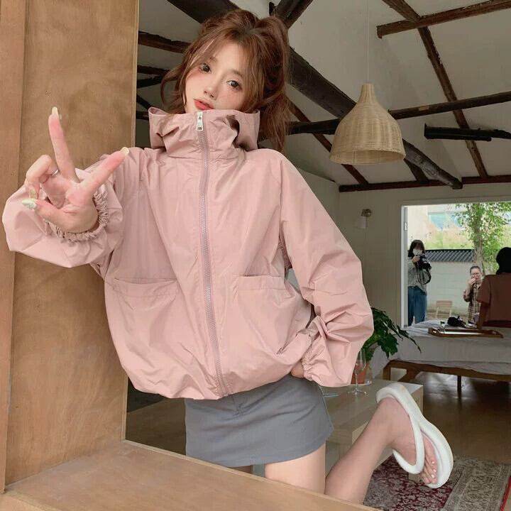 ピンク日焼け止めジャケットジャケット女性の夏 2023 新しいデザインセンスニッチ小さな揚げストリートフード付きトップ サマー 夏物 8571645867155531