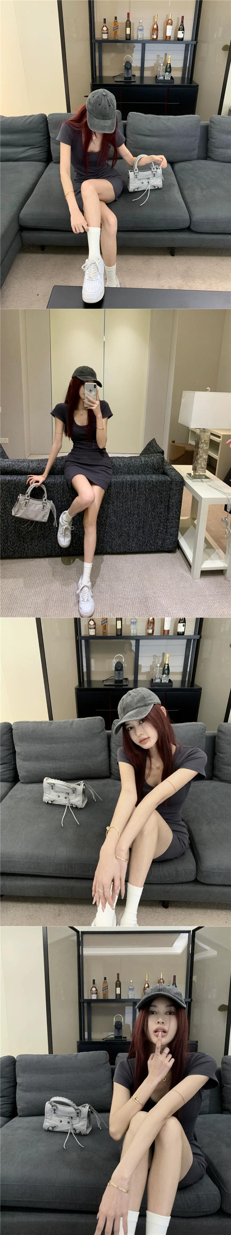 乳白色の T シャツドレス女性の夏の 2023 新しい純粋な欲望の女の子ユニークで絶妙なスリムフィットバッグヒップショートスカート ホワイト サマー 夏物 Tシャツ ピュア 8571652901833267