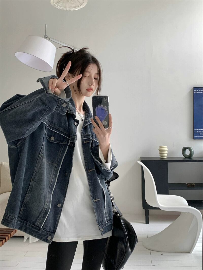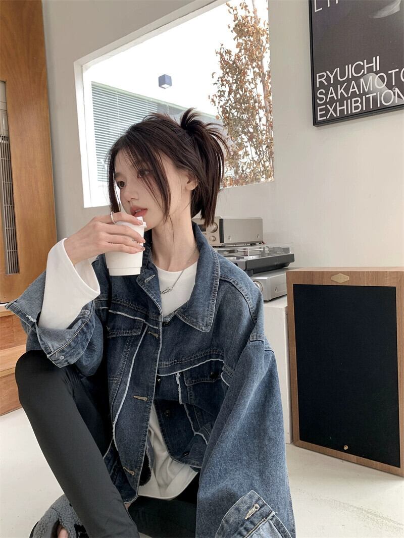 デニムジャケットレディースルーズオールマッチ2023春新スタイルアインスタイルデザインセンスニッチアメリカンレトロトップ スプリング 春物 8571646363796692