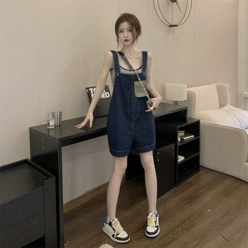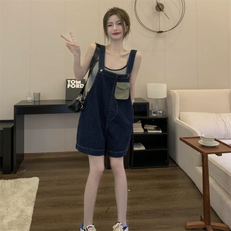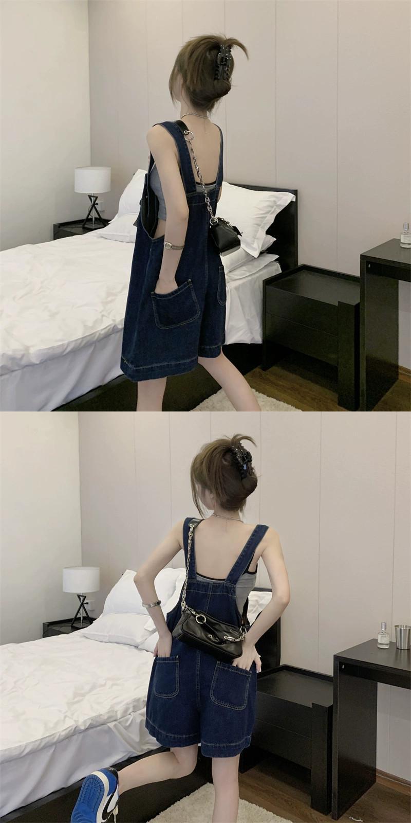 デニム サスペンダー ショーツ レディース 小さめ 2023年夏 新デザイン センスネット レッドミルクフフ 年齢軽減ワイドパンツ サマー 夏物 ブルマー 8571685539176148